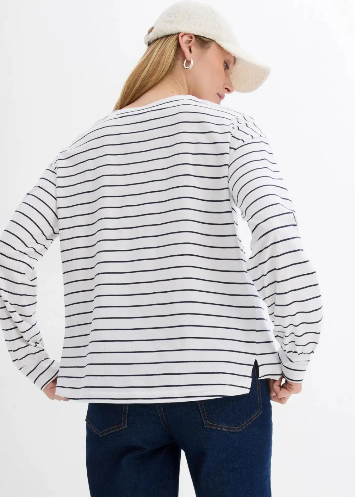 Modernes Langarmshirt mit Ballon-Ärmel in Streifen Optik