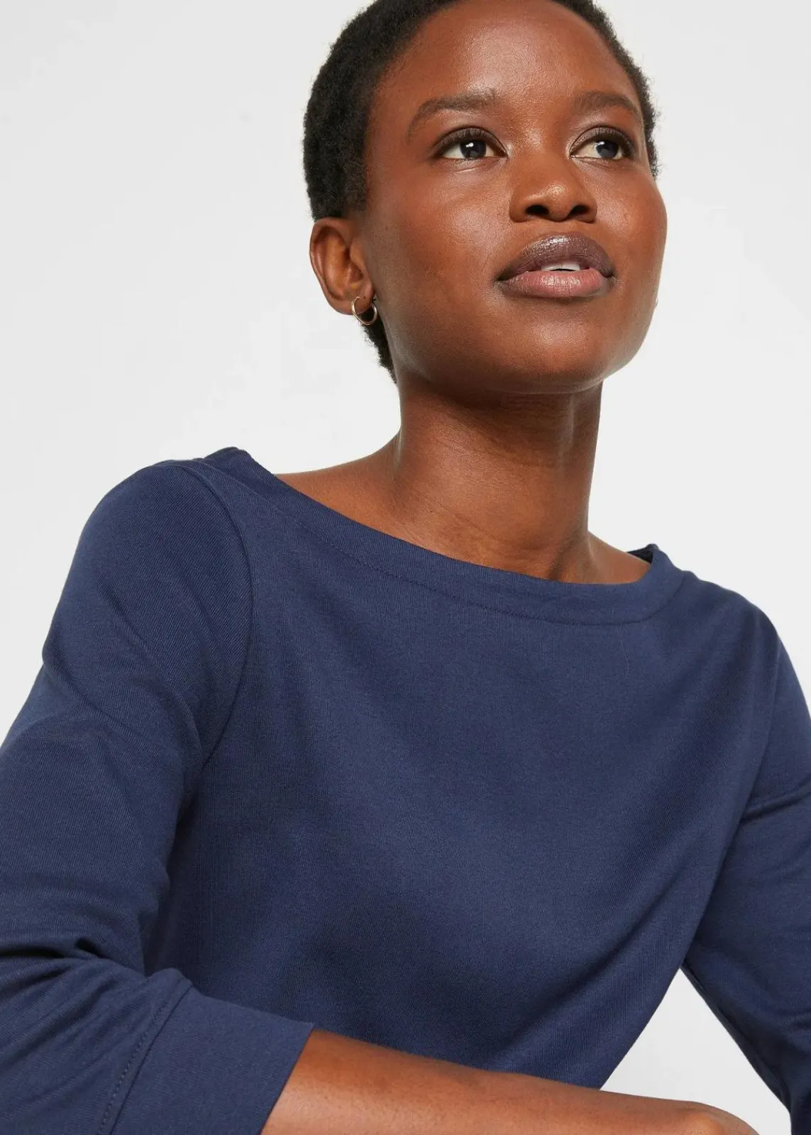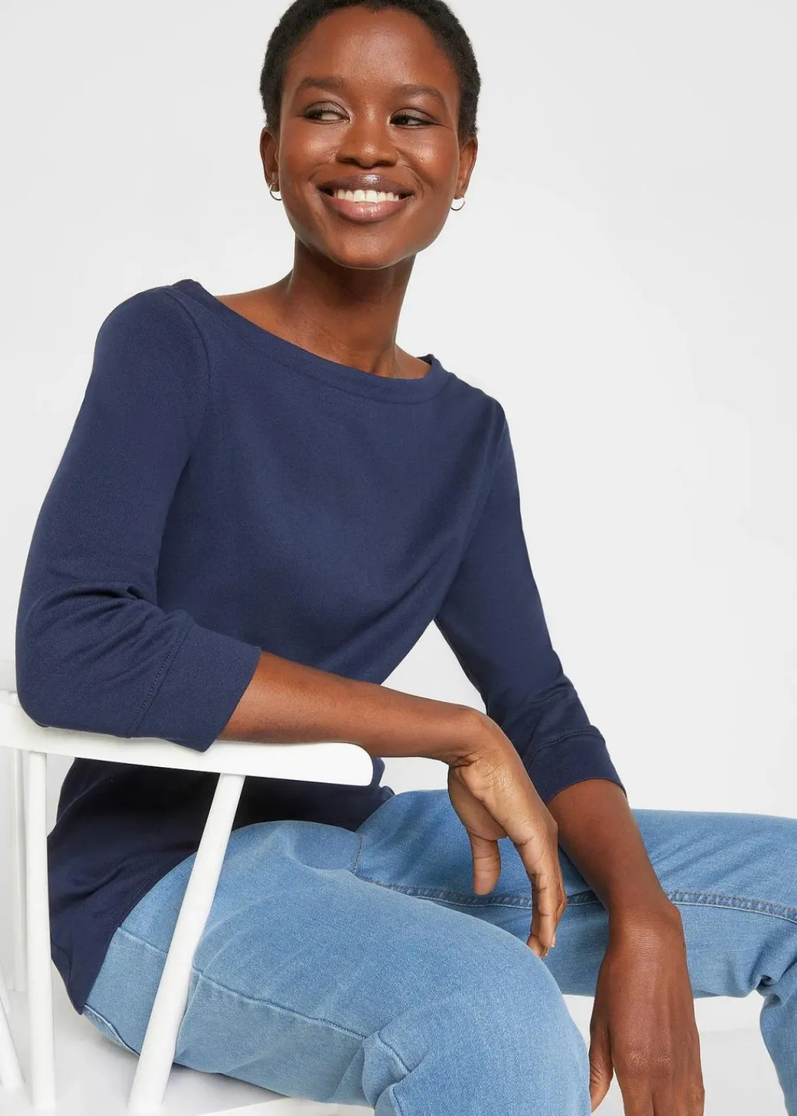 Bequemes Stretch-Shirt mit 3/4 Ärmeln und U-Boot Ausschnitt