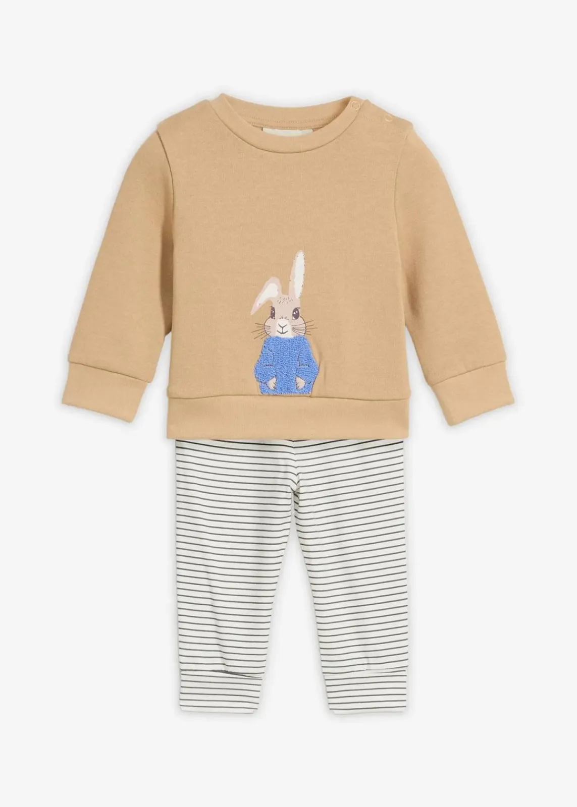 Süßes Baby unisex Set mit Hasenprint: Sweatshirt und gestreifte Leggings für kleine Entdecker!