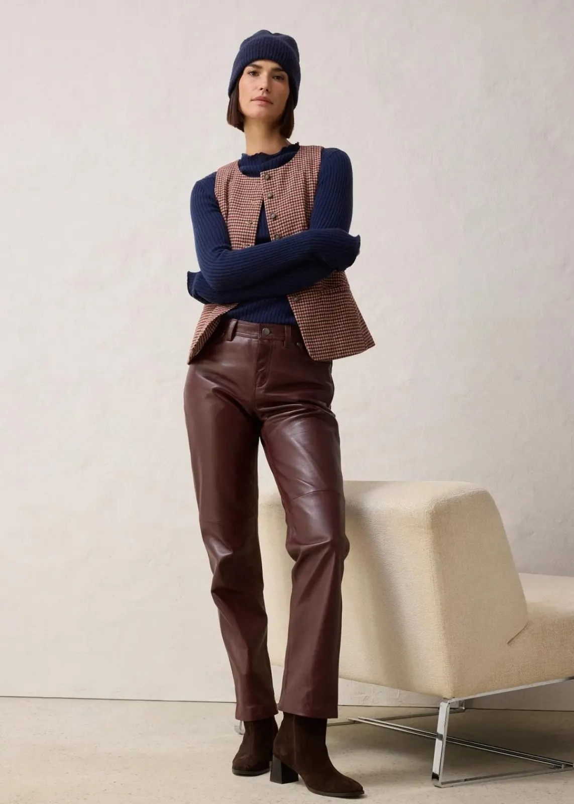 grade geschnittene Hose im zeitlosen 5-Pocket Style aus weichem Leder