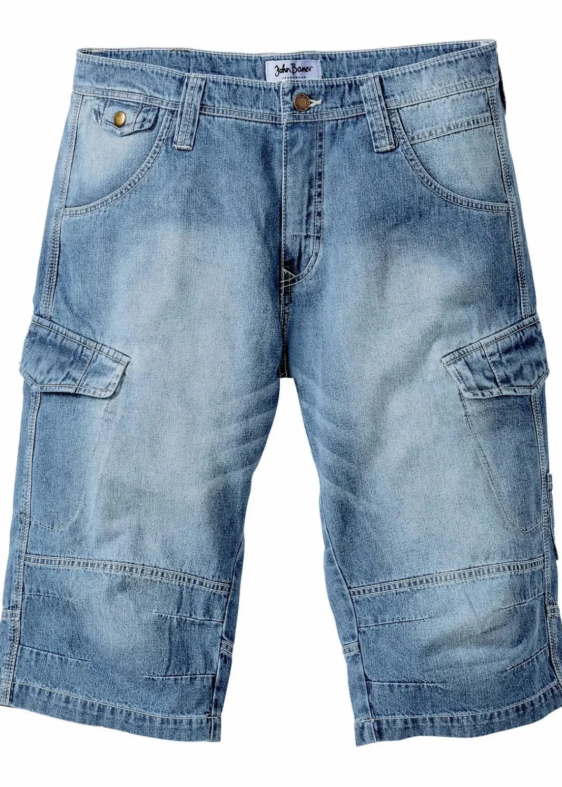 Modische Jeans-Long-Cargobermuda aus leichtem Denim mit Ziernähten