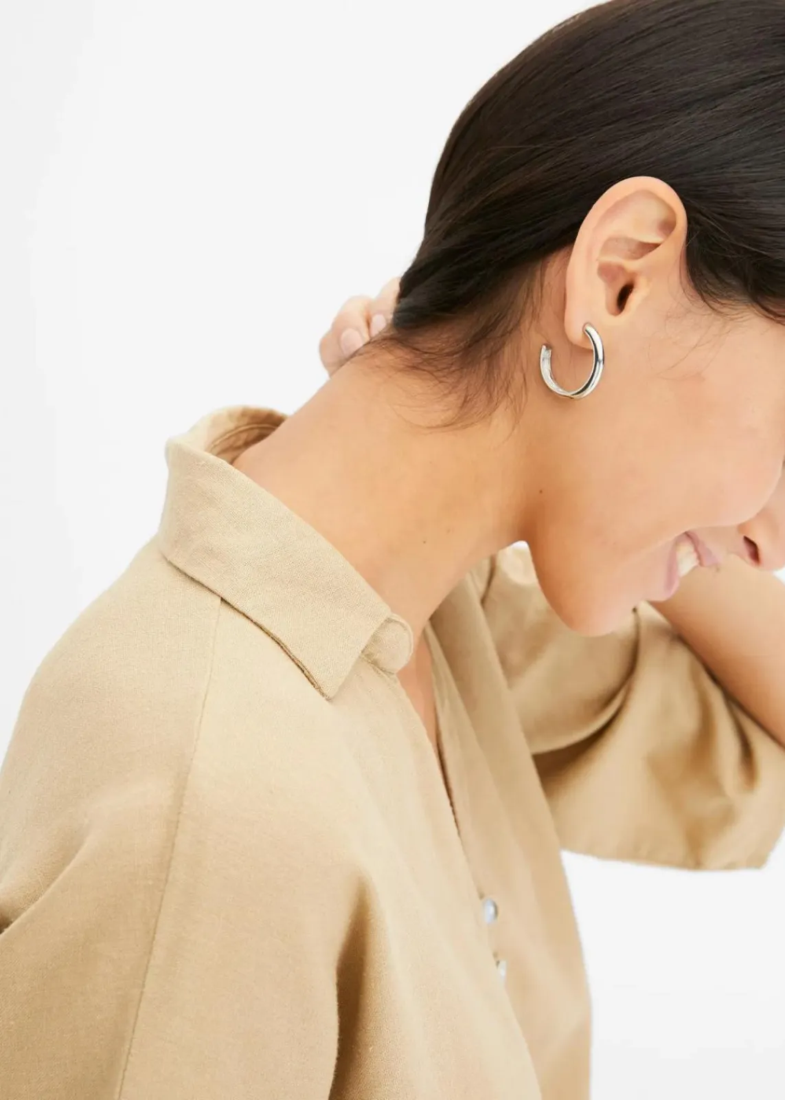 modische Leinen-Bluse mit Knoten-Detail vorne am Saum