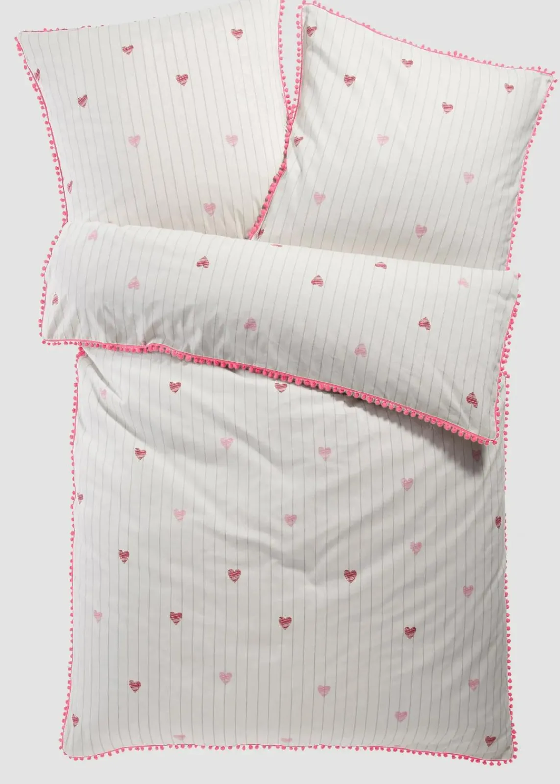 Bettwäsche mit Herzen und Pompons