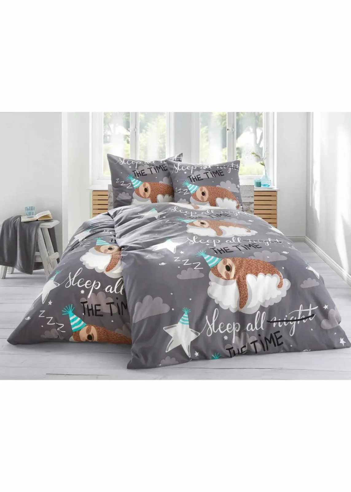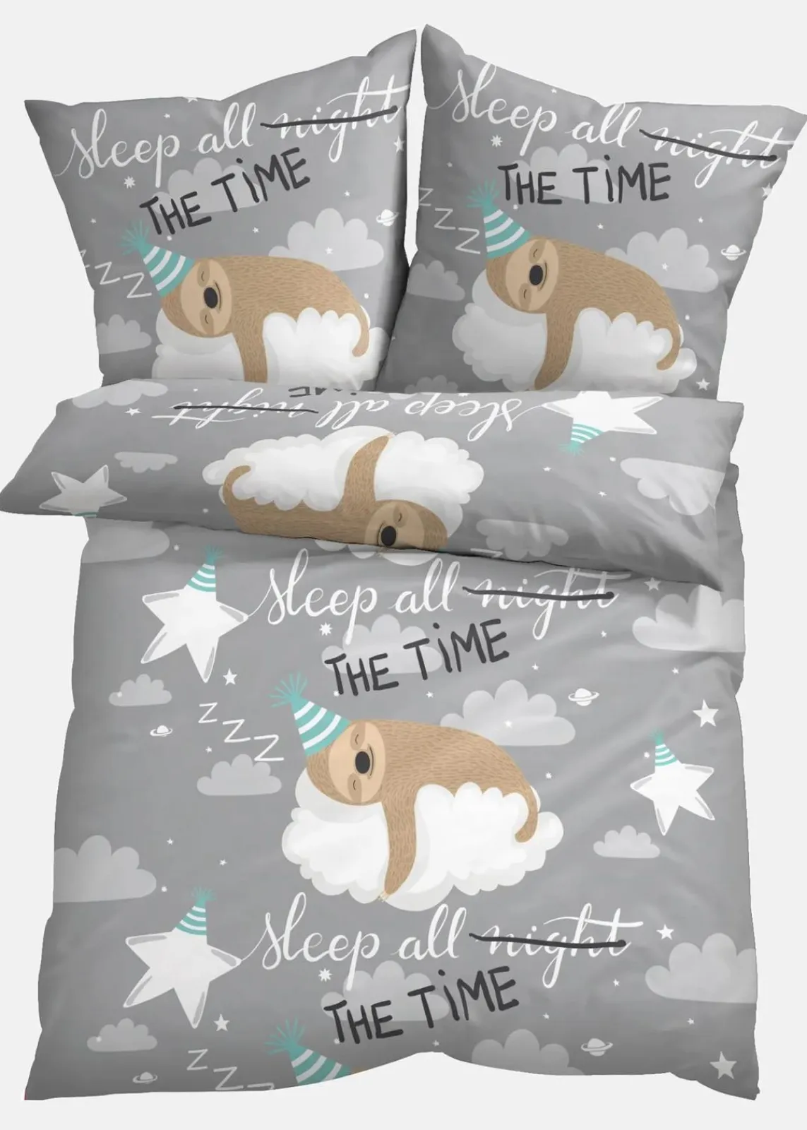 Für Faultier-Liebhaber ein Muss: bedruckte Bettwäsche mit Faultier Motiv und Schriftzug.