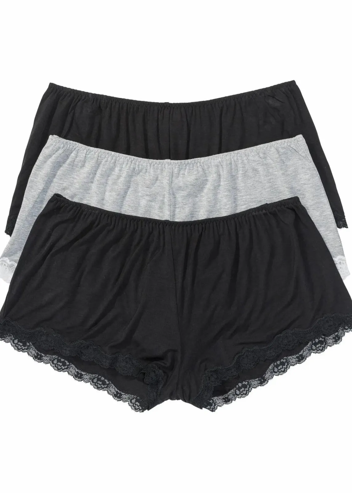Mit einem legeren Schnitt und einer angesagten Spitzenverzierung präsentieren sich diese süßen Boxer im Dreierpack. Die lockeren Boxer für Frauen sind aus weicher, fließender Qualität gestaltet und liegen leicht auf der Haut.Die stylishen French Knicker lassen sich als Slip zu Hemden und BHs tragen und auch als Pyjama-Unterteil zu Shirts und Tops kombinieren.