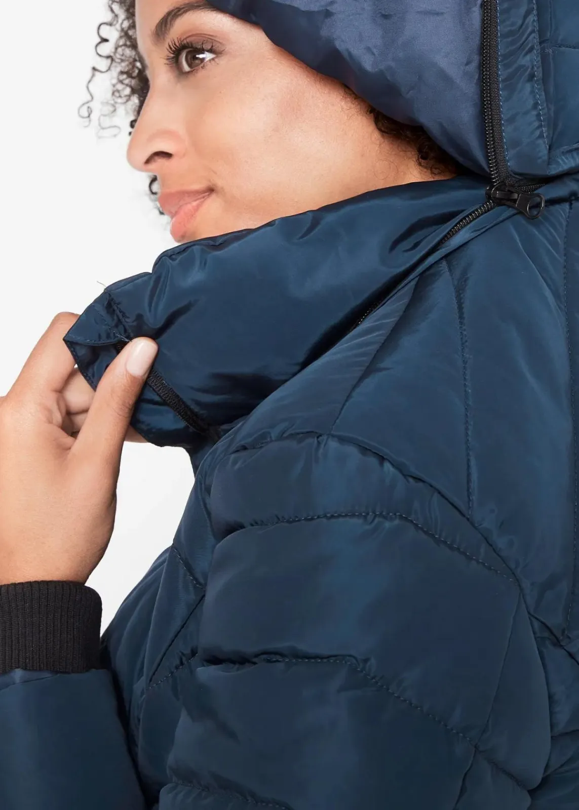 Diese Steppjacke mit kurzem Kragen überzeugt mit beidem: hohem Tragekomfort und einem legeren Aussehen. Das Modell von bpc präsentiert sich in angenehmer Länge mit einer abnehmbaren Kapuze und einem Tunnelzug. Mithilfe der seitlichen Reißverschlüsse lässt sich die Jacke an der Hüfte erweitern. Farblich abgesetzte Ärmelenden mit Rippbündchen unterstreichen das lässige Aussehen. Zu schließen ist die bequeme Long-Steppjacke mit Wattierung mit einem 2-Wege-Reißverschluss.