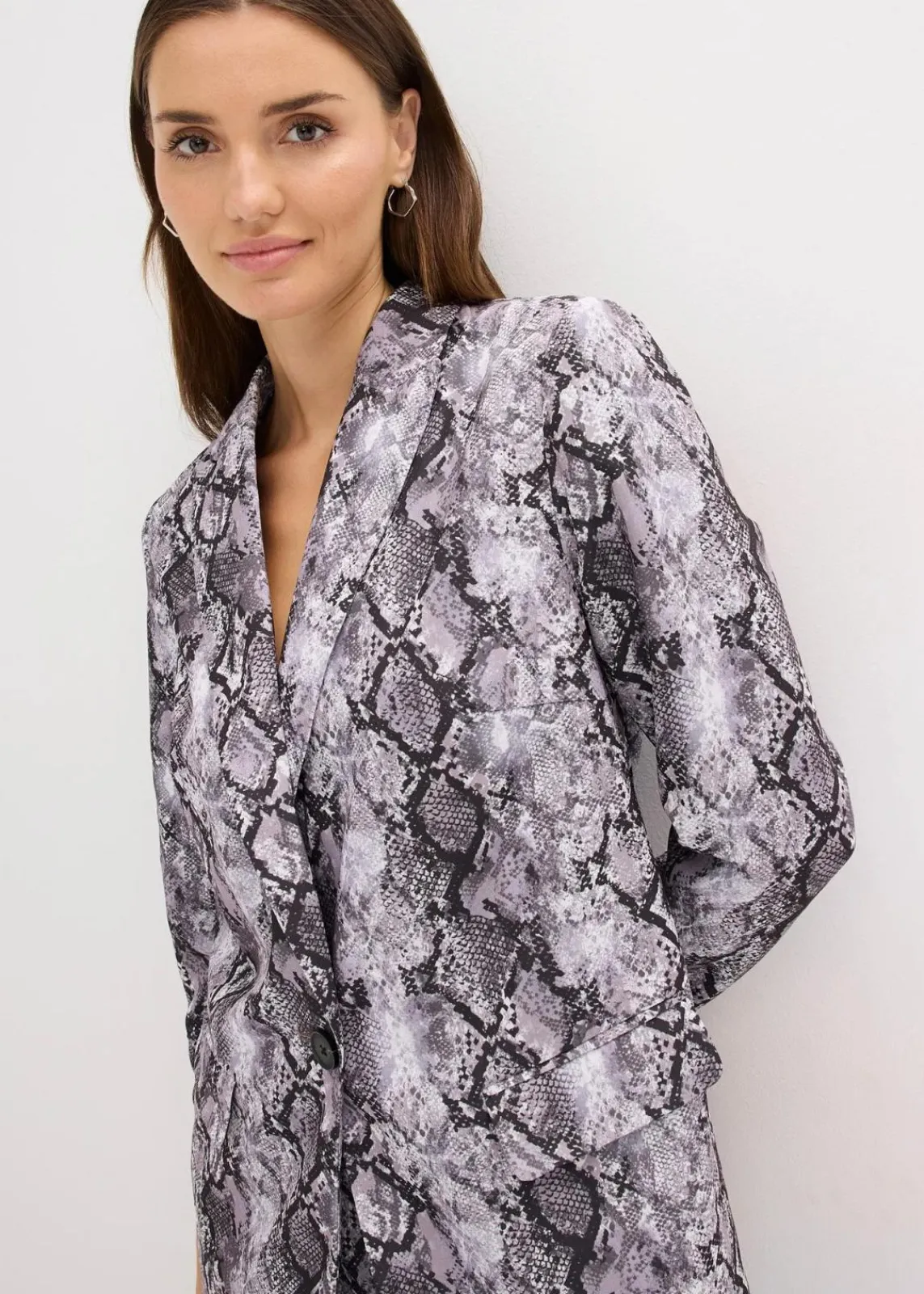 modisch bedruckter Longblazer mit Knopfverschluss vorne