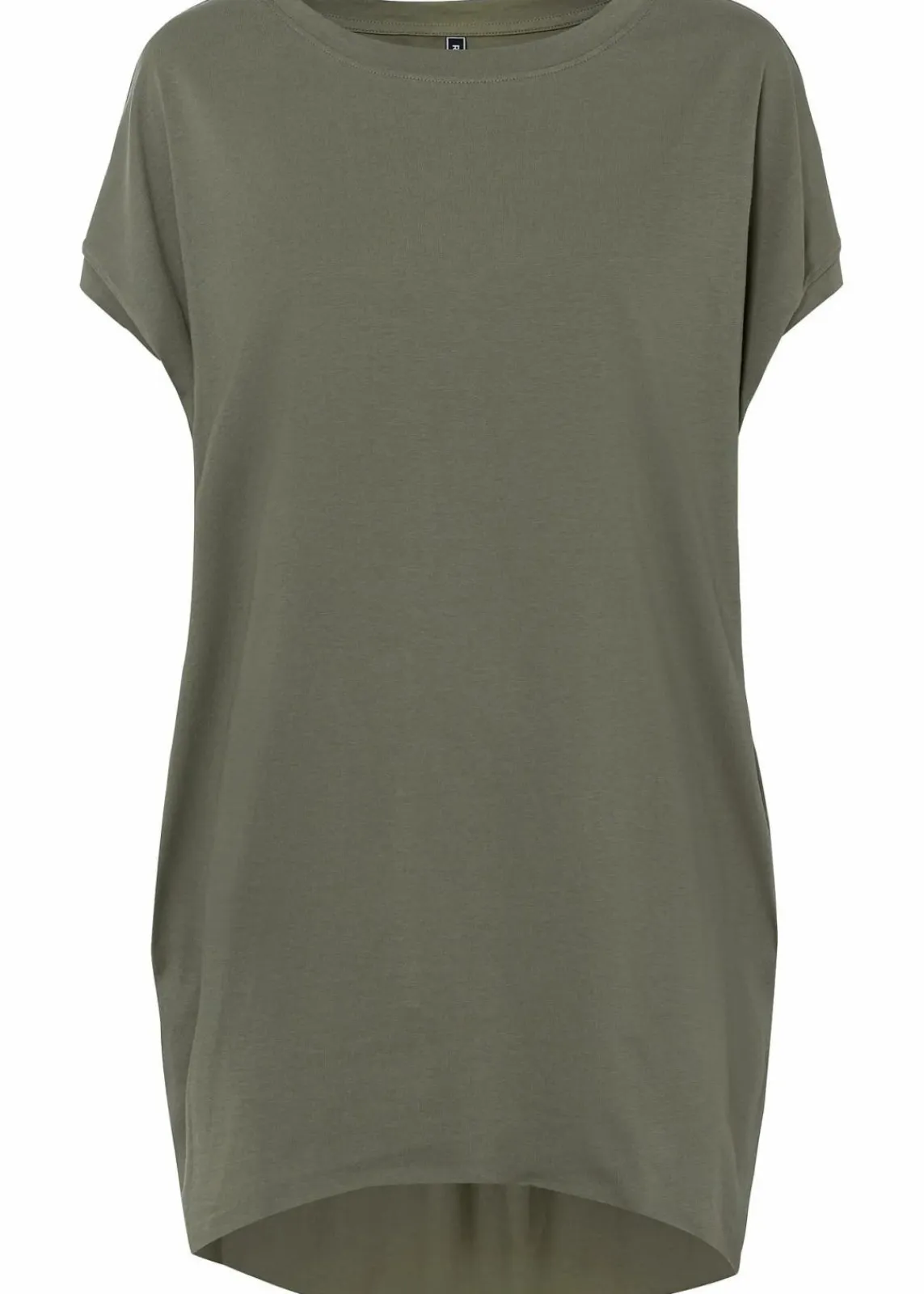Mit weitem Schnitt und abgerundetem, verlängertem Saum hinten. Mit kurzen Ärmeln und Seitentaschen. Lässt sich toll zur Jeans kombinieren. Länge in Größe 36/38 ca 94 cm.