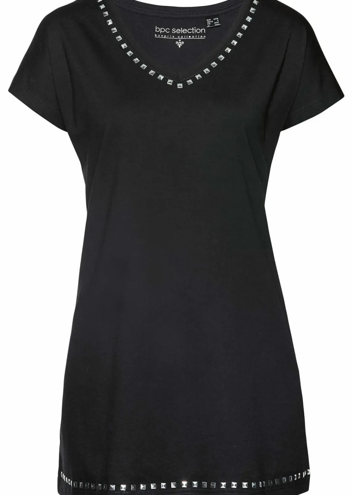 Modernes Longshirt mit Nietenapplikation.