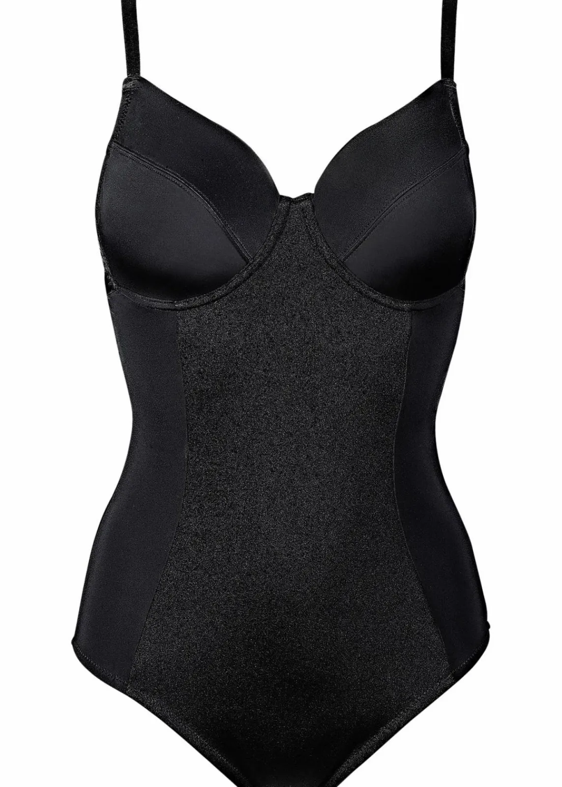 Formbody mit Bügel und Cup-Naht. Er sorgt für eine schlanke Silhouette durch eine verstärkte Bauchpartie. Die Bauchpartie ist mit einem formenden Material unterfüttert. Die Vorderpartie des Body´s ist aus glänzendem Material. Die Cups sind mit Baumwolle gefüttert und sorgen für einen tollen Tragekomfort. Der Body besitzt einen BH-Verschluss im Rücken und ist im Schritt durch Haken und Ösen zu öffnen. Maite Kelly empfiehlt: „Ich liebe Bodies! Gerade wenn es um ein sicheres, souveränes Auftreten geht – egal ob beruflich oder privat. Da weiß ich einfach, dass zum Beispiel eine Bluse perfekt sitzt und ich fühle mich stark, um selbstbewusst durch den Tag zu gehen.“