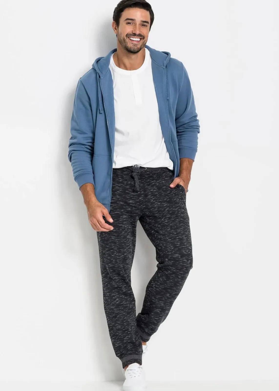 Ob beim Sport oder beim Relaxen – mit dieser Herren Sweathose aus der bpc Kollektion sind Männer bequem gekleidet.Die melierte Jogginghose im Regular Fit lässt sich am Gummibund mit einer Kordel regulieren. Die Rippbündchen an den Beinen sind mit einem kontrastfarbenen Streifen gestaltet und sorgen für einen hervorragenden Sitz.
