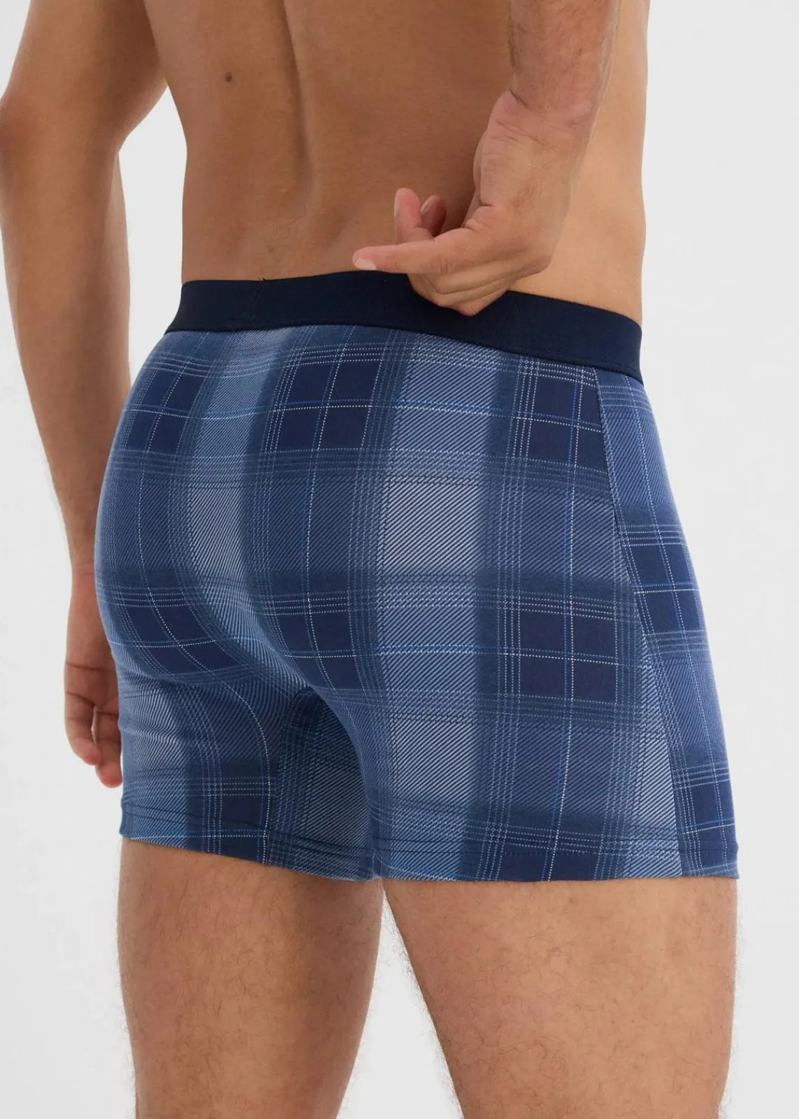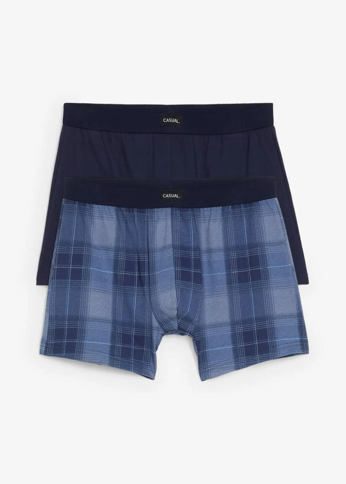 Midi Boxershorts in figurnaher Passform mit kariertem Druck und in uni im 2er Pack.