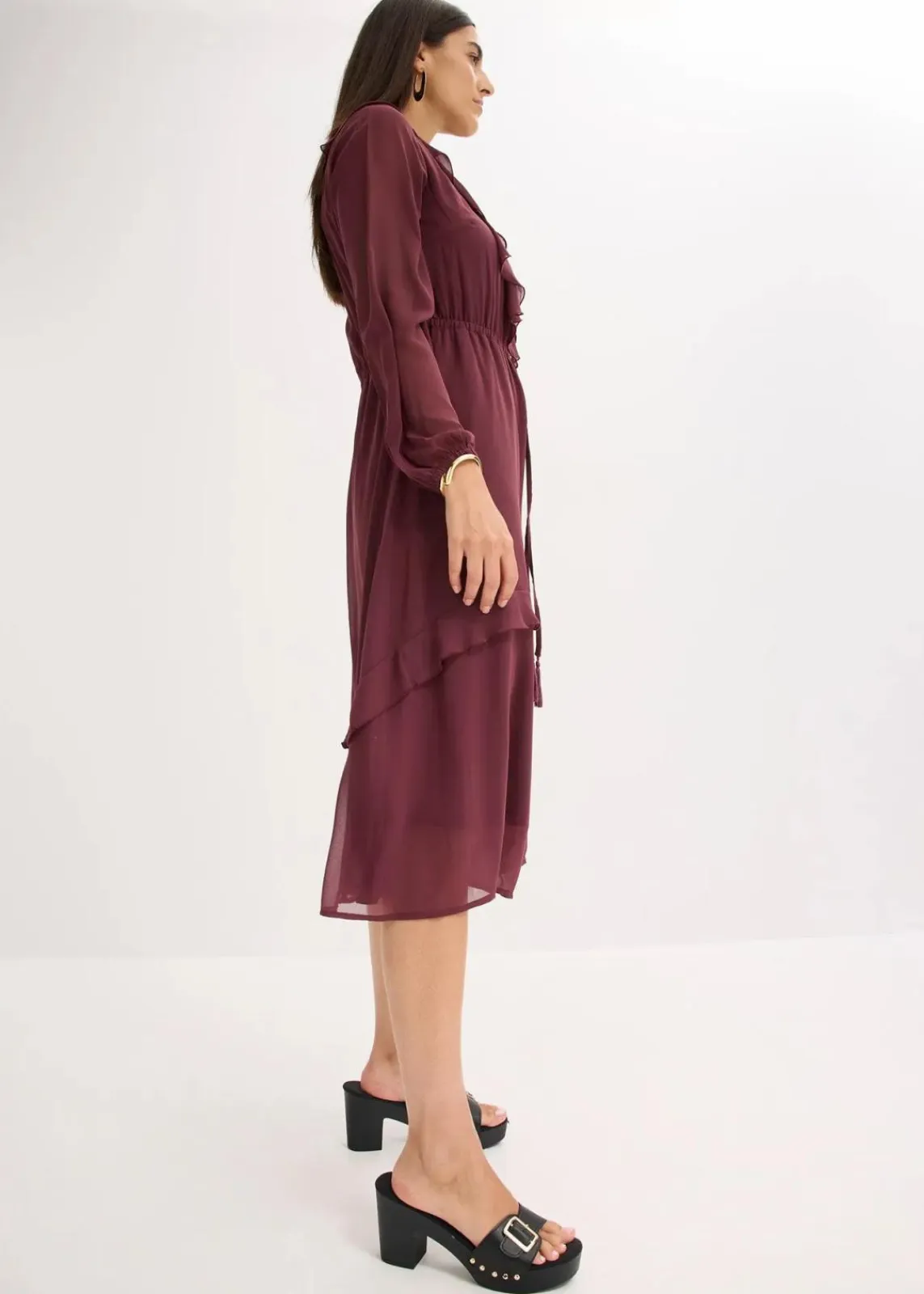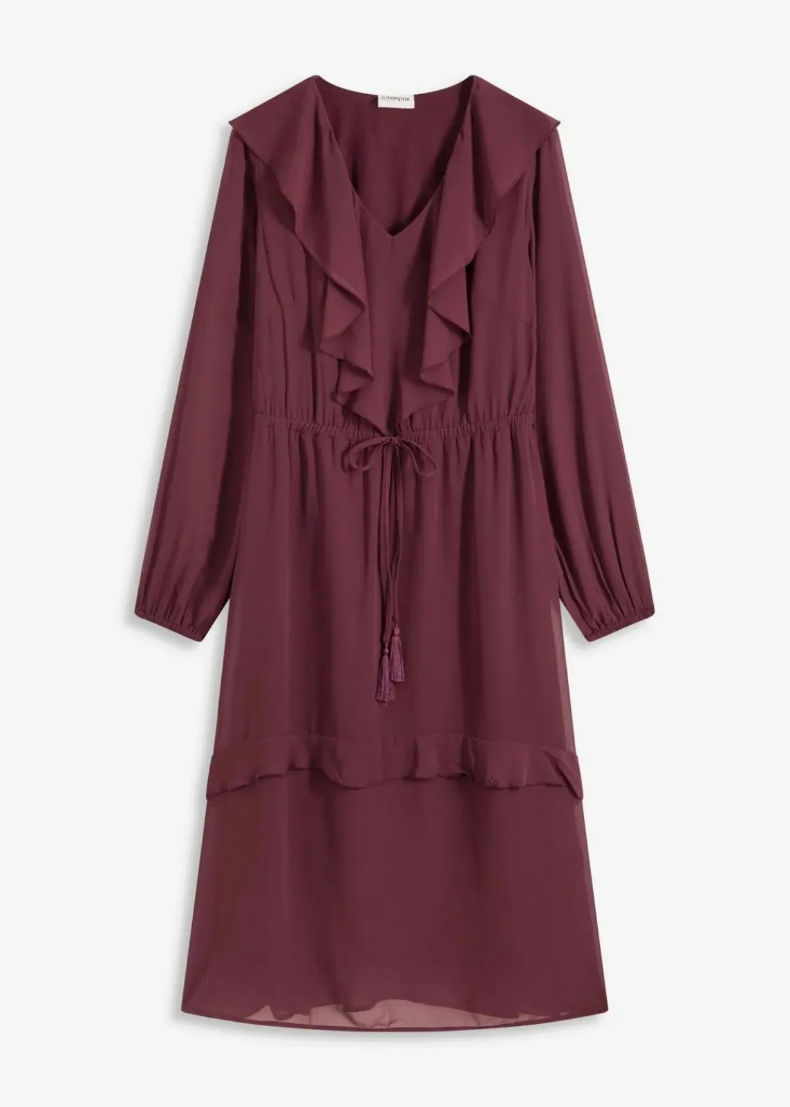 Mittellanges Kleid mit Volants am Ausschnitt und Saum