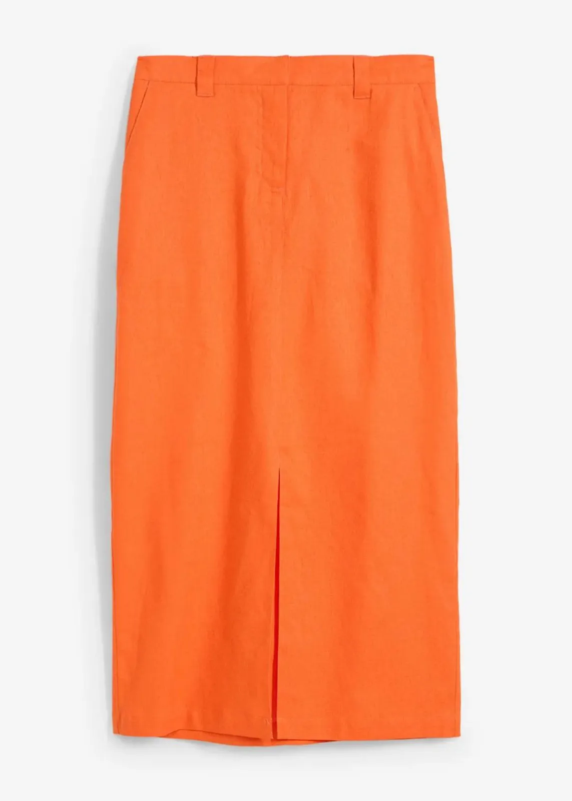 Midi-Rock mit Schlitz vorne, sowie Taschen und elastischem Bund hinten