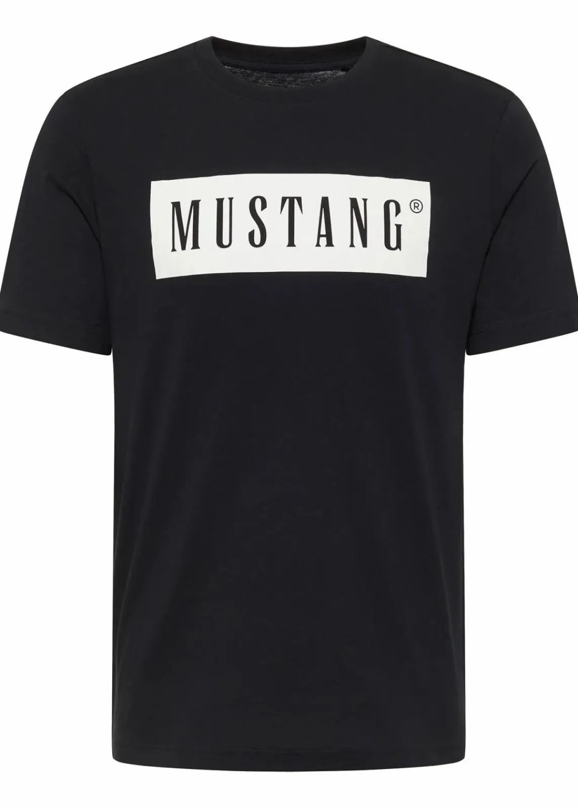 Lässig geschnittenes Kurzarmshirt von Mustang mit Rundhalsausschnitt und Label-Schriftzug auf der Brust
