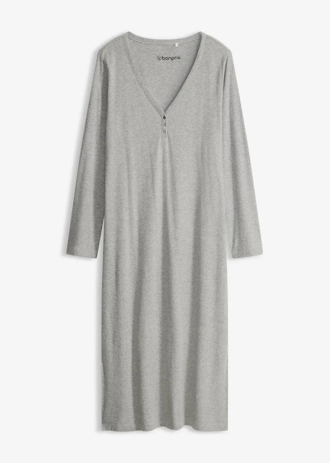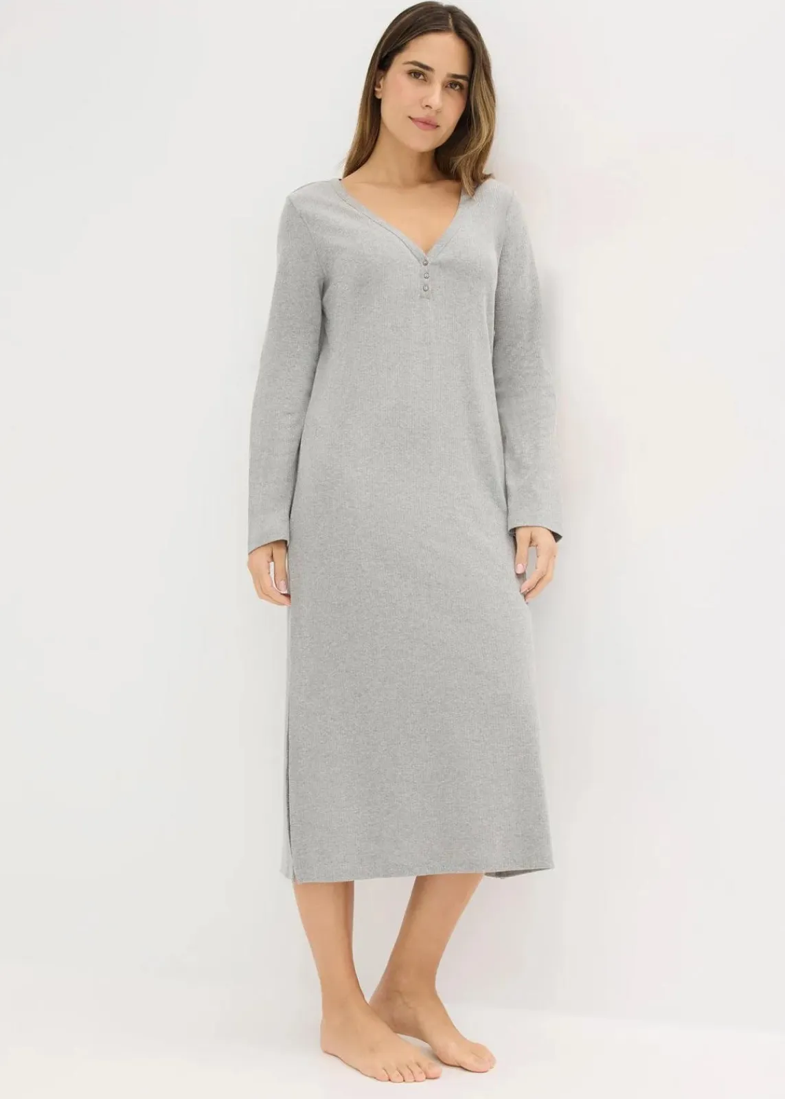 Langes langärmeliges Nachthemd mit V-Ausschnitt und hohen Seitenschlitzen