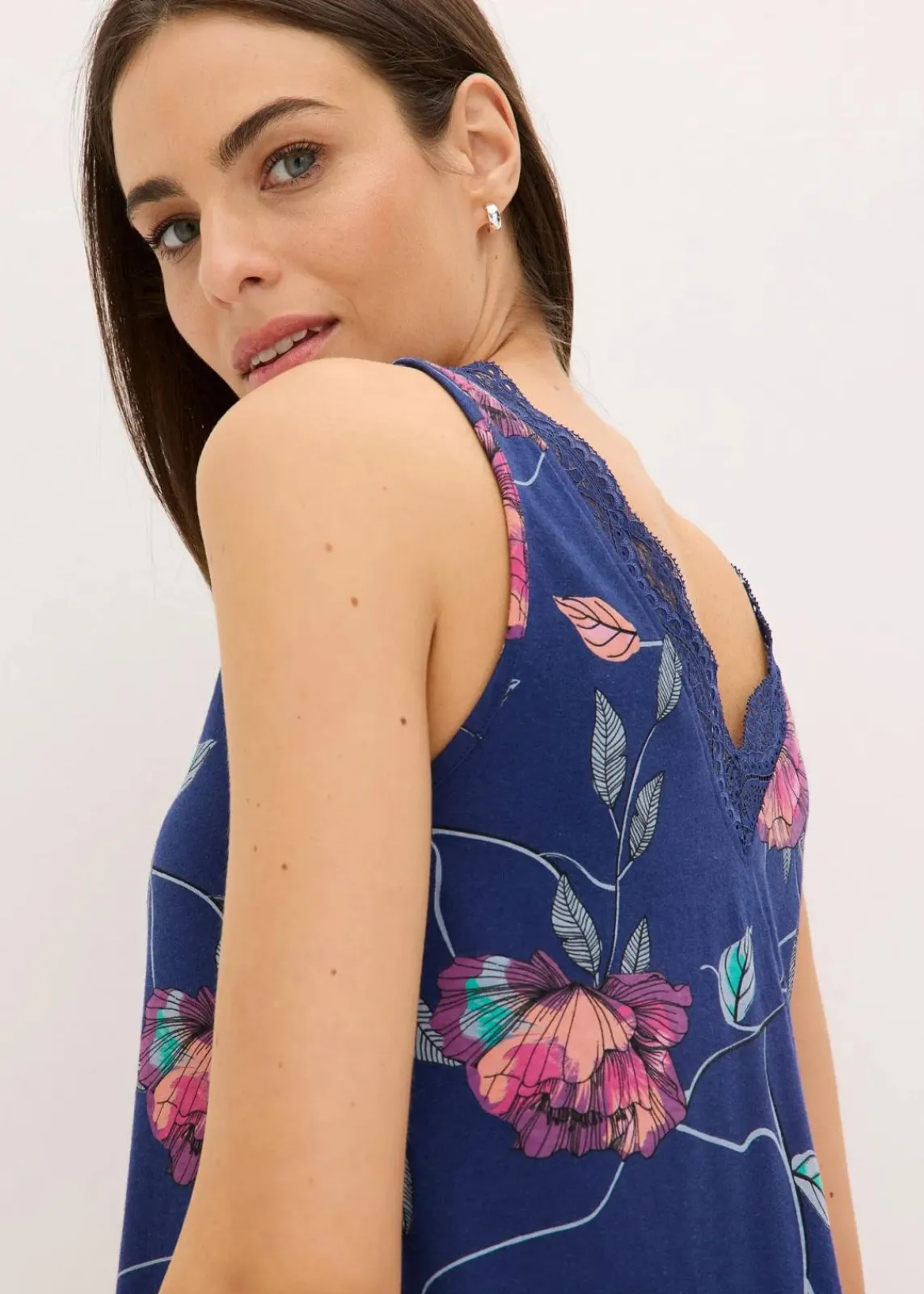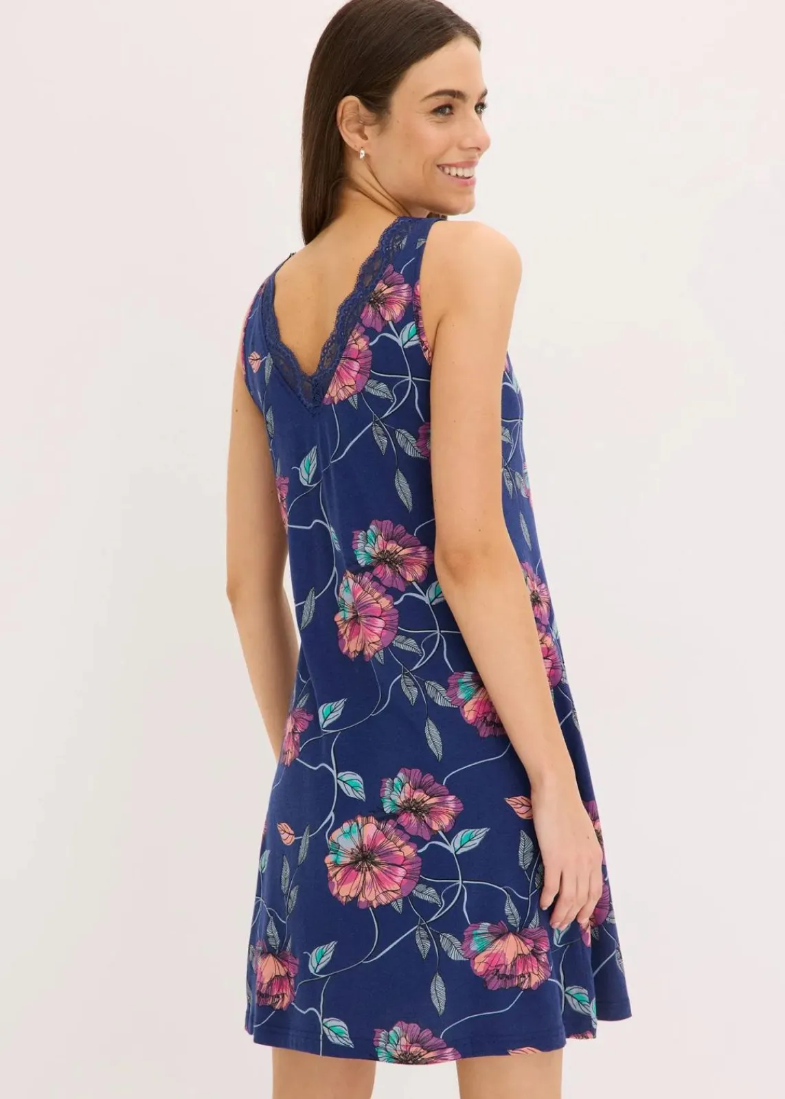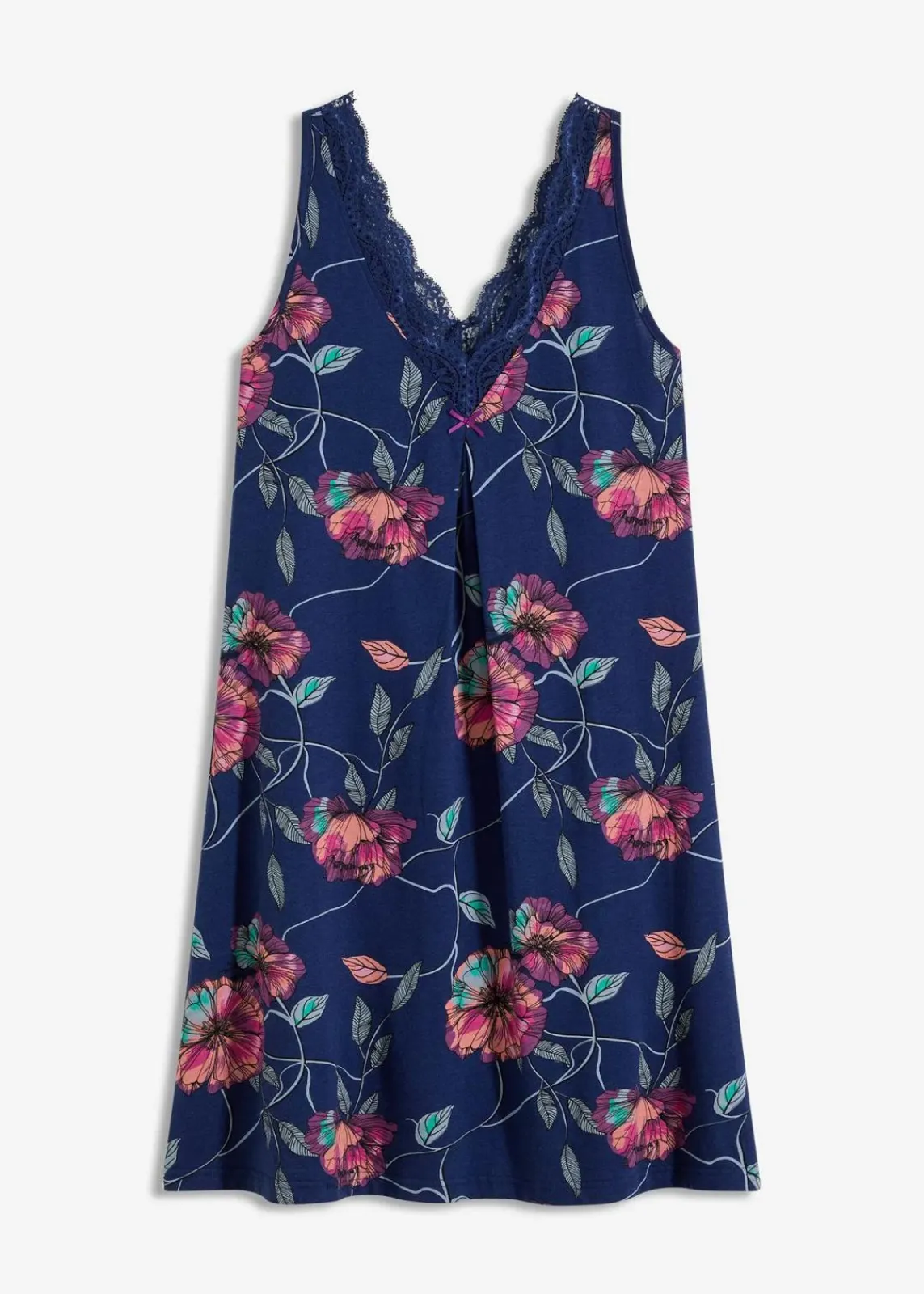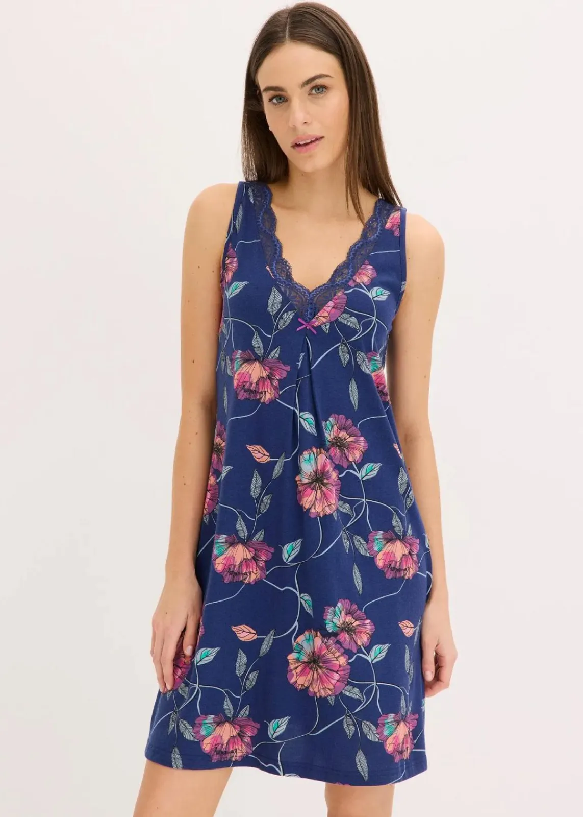 Nachtkleid mit schöner Spitze und Blumendruck