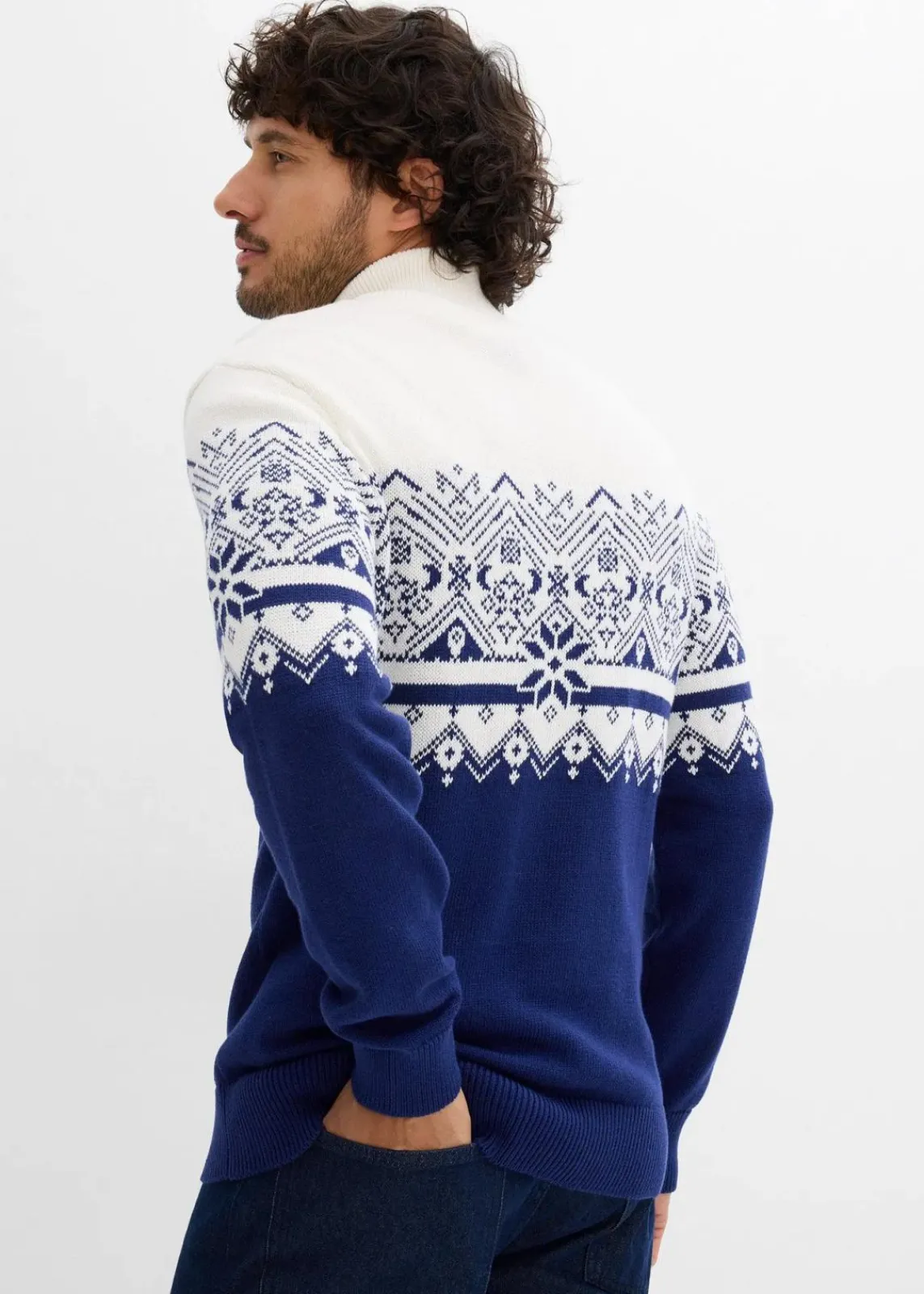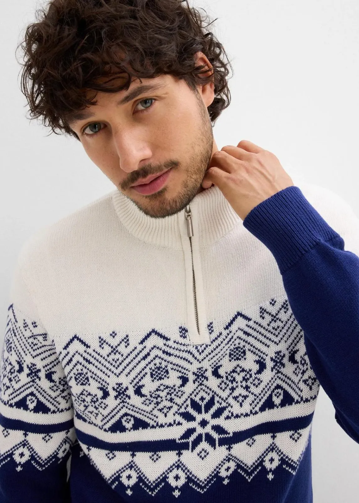 moderner Troyer Pullover mit Reißverschlussöffnung im angesagten Norweger-Stil