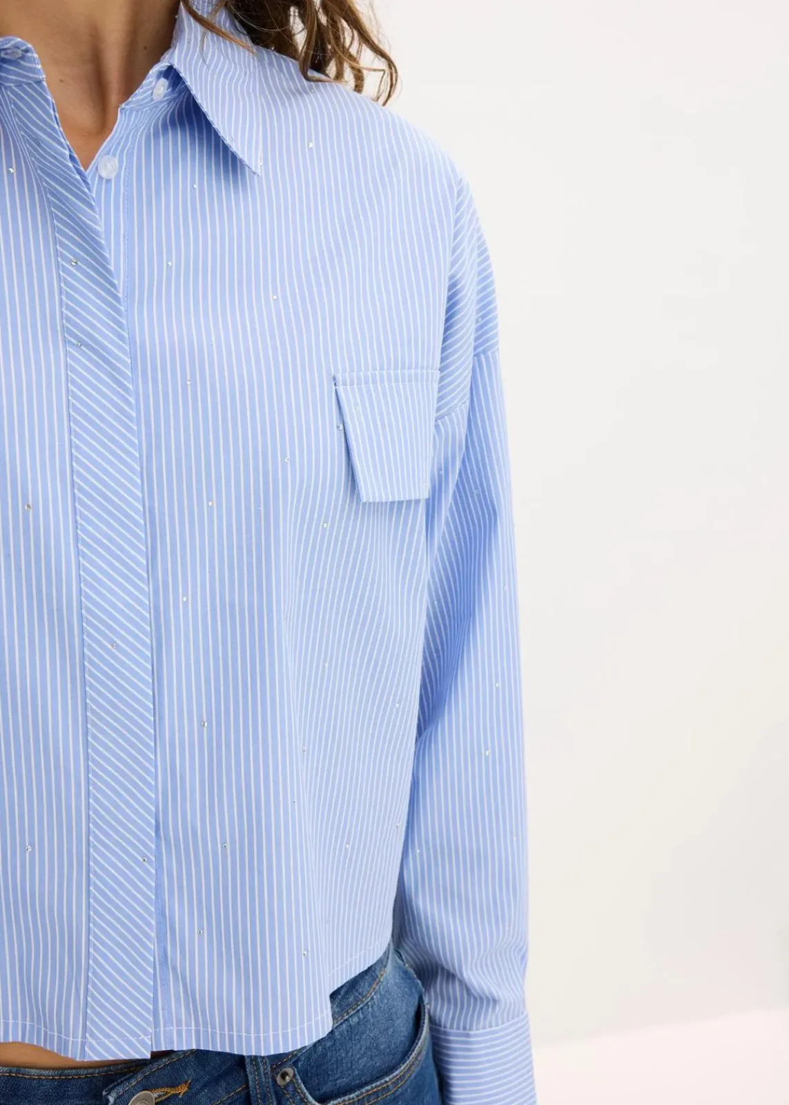 Kurze Bluse in Streifendessin mit aufgesetzten Patten