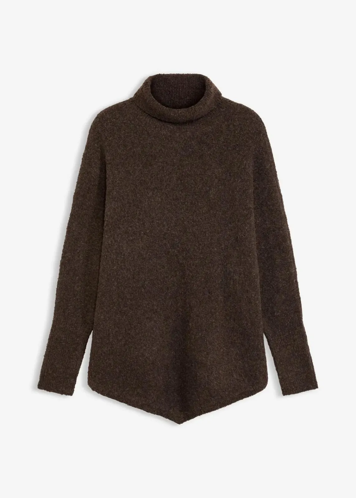weit geschnittener Poncho-Pullover mit asymmetrischem Saum und Rollkragen