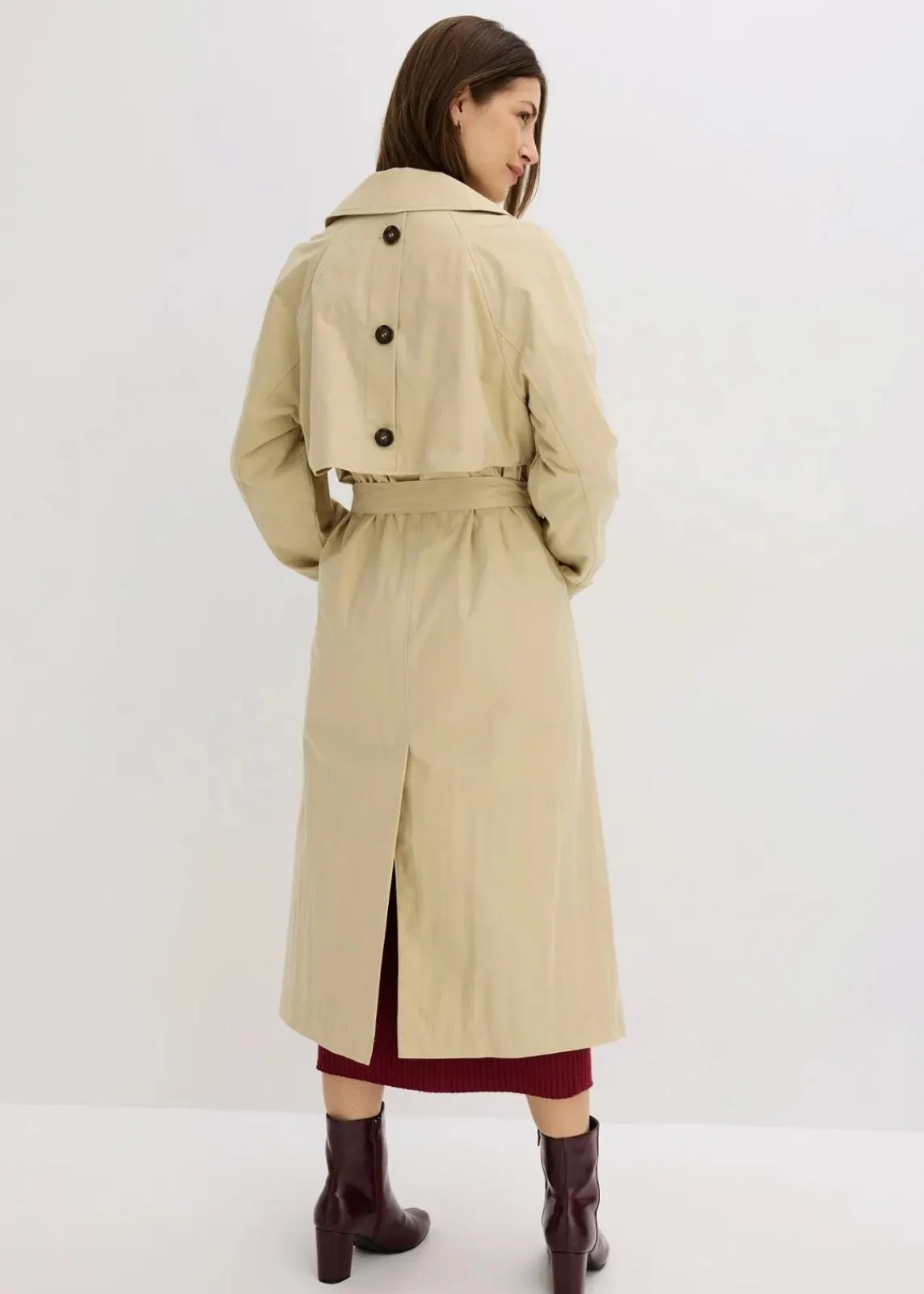 Zweireihiger Trenchcoat mit Bindegürtel in der Taille sowie schrägen Leistentaschen