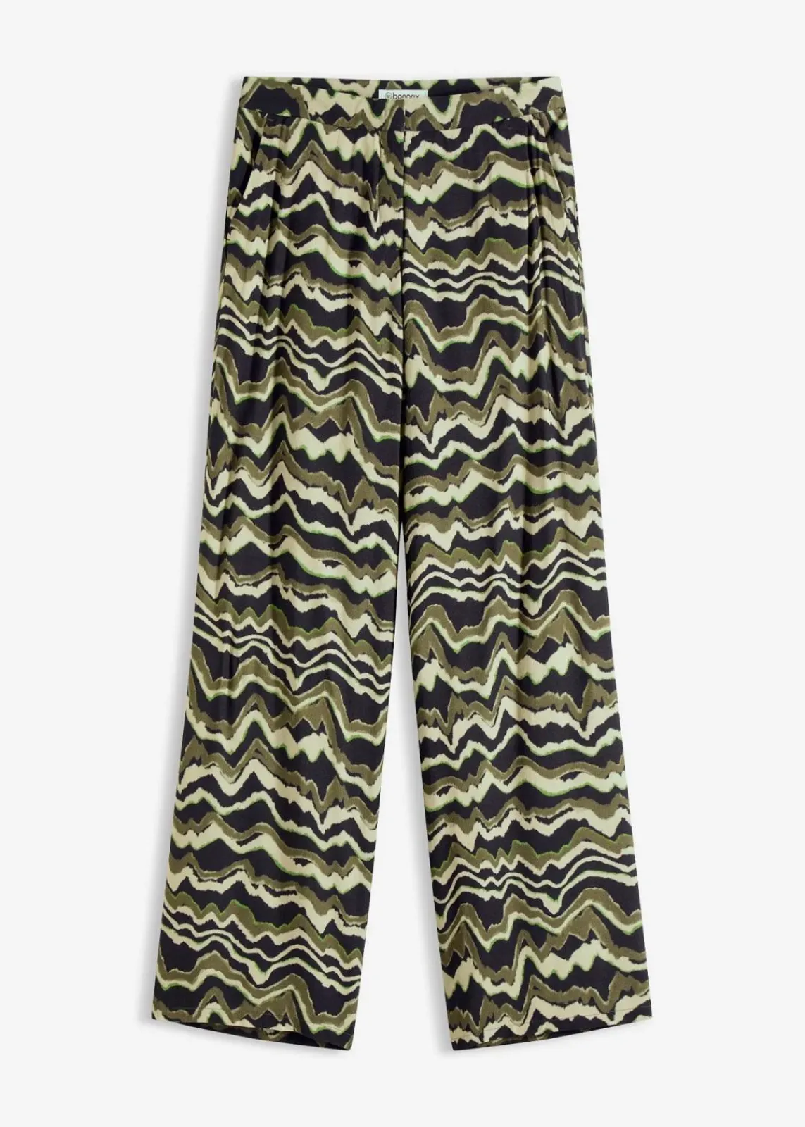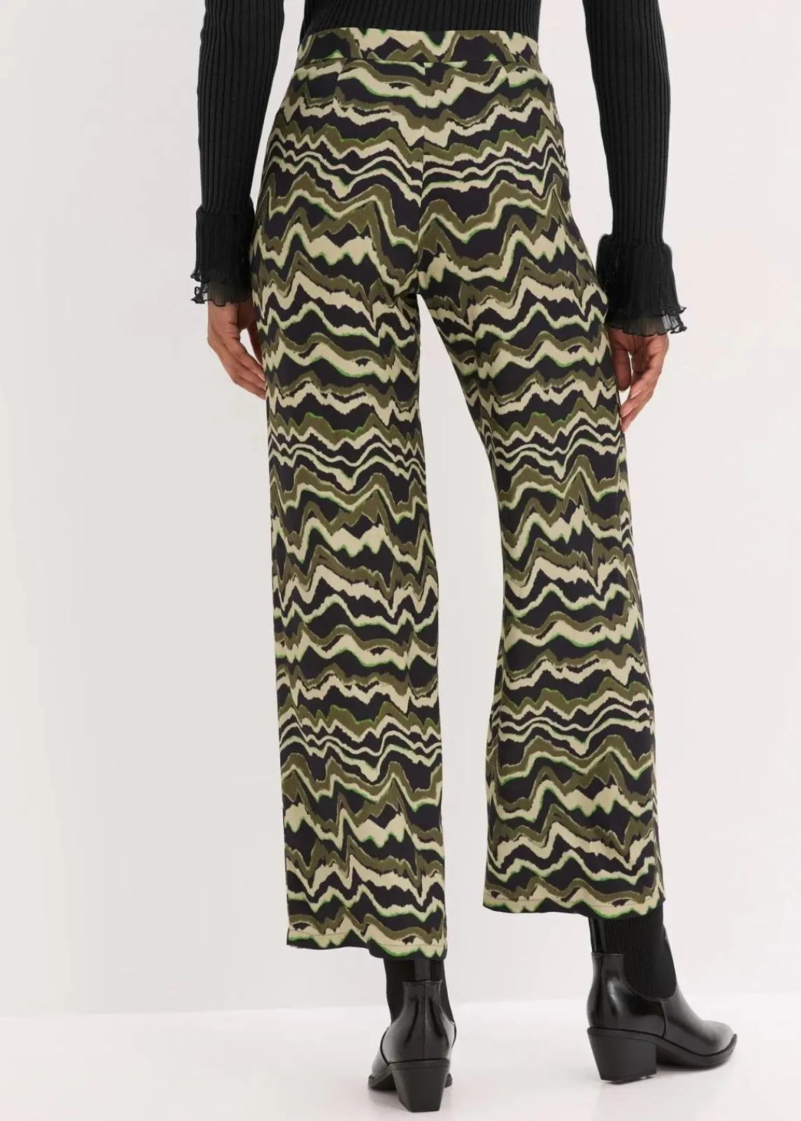 modisch bedruckte Palazzo-Hose aus leichtem Viskose-Crêpe mit Haken- und Ösen-Verschluss vorne