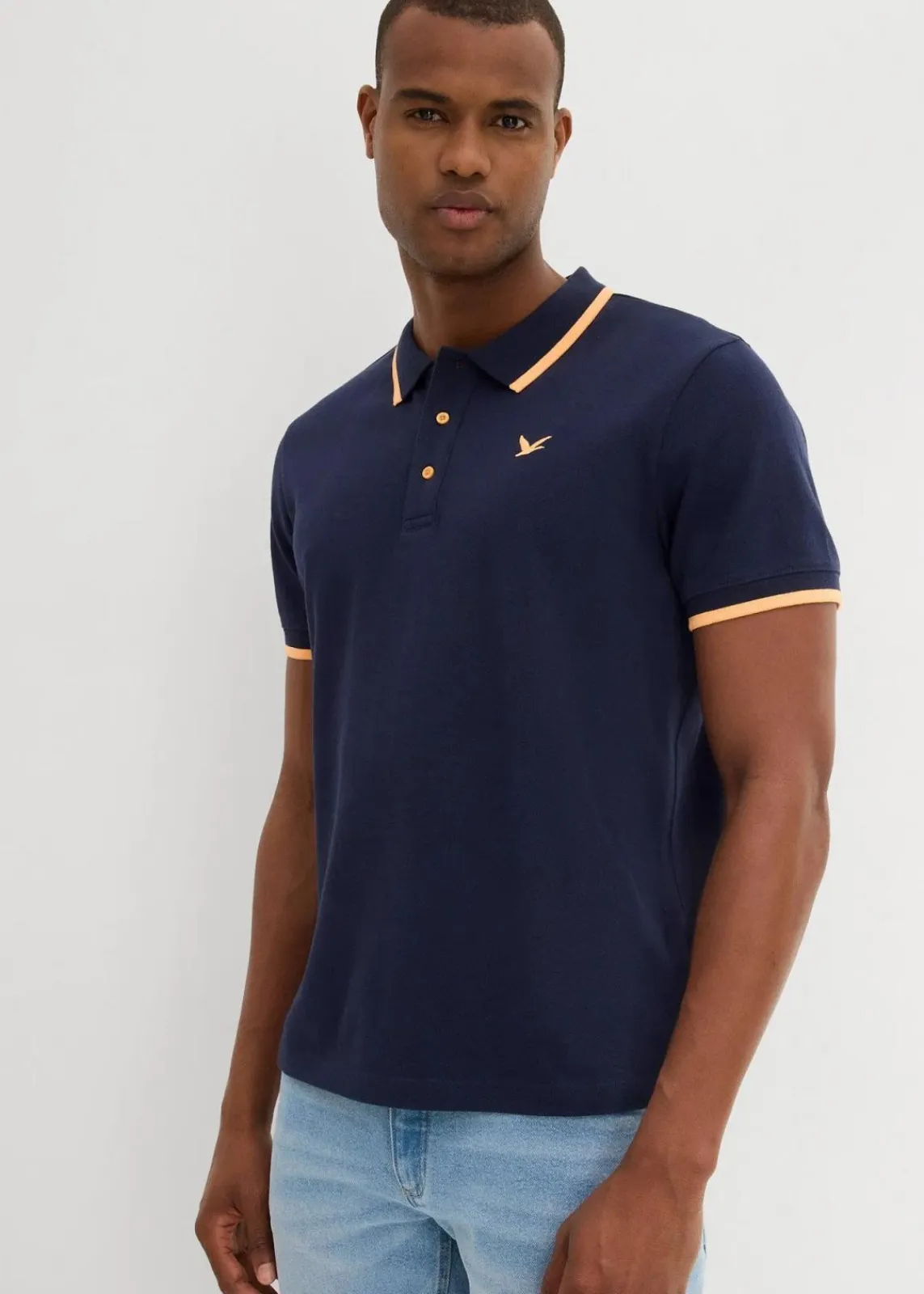 modernes Poloshirt in Piqué-Qualität mit kleiner Bruststickerei und Kontrastdetails