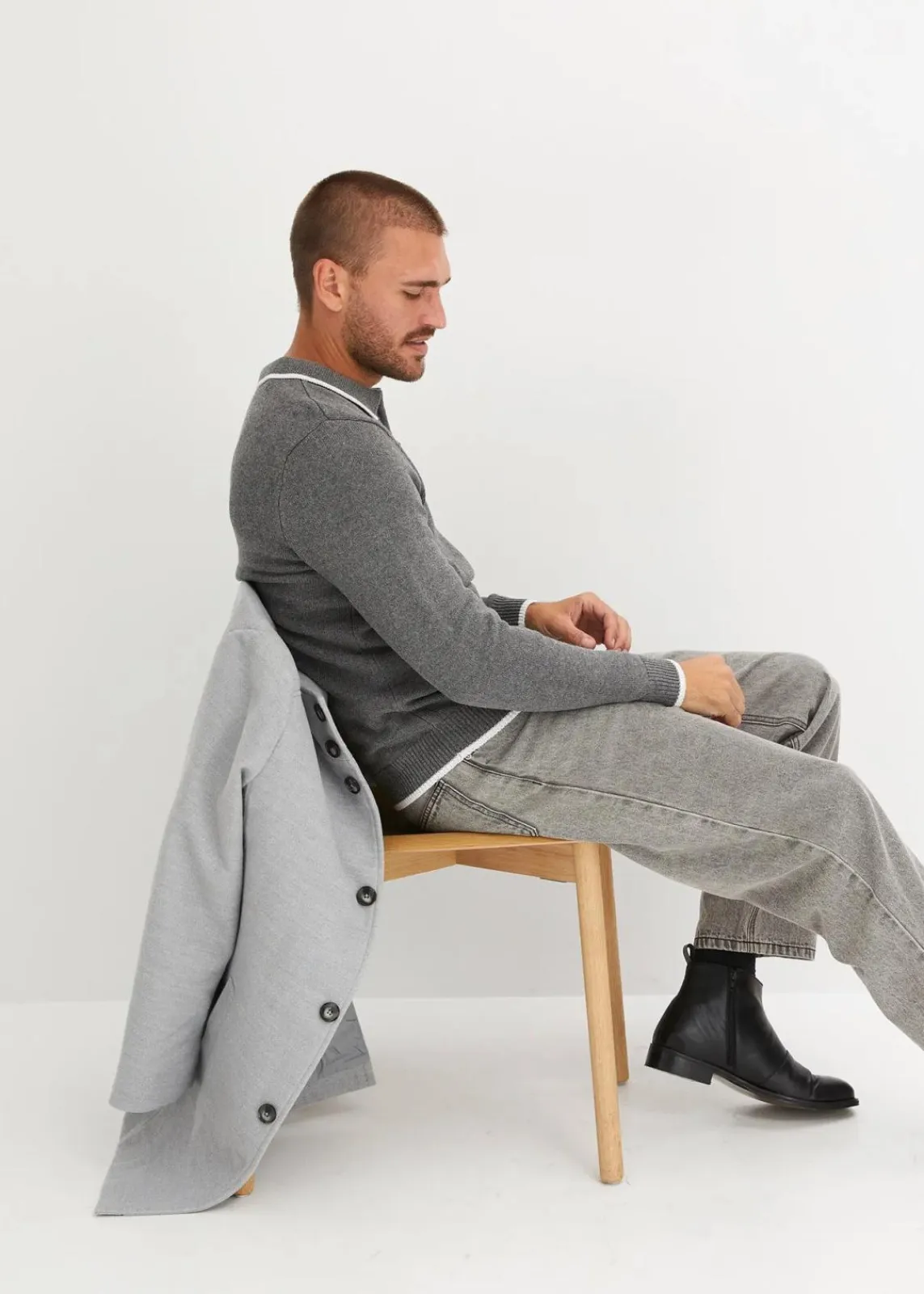 Modischer Pullover mit Polokragen und kontrastfarbigen Details