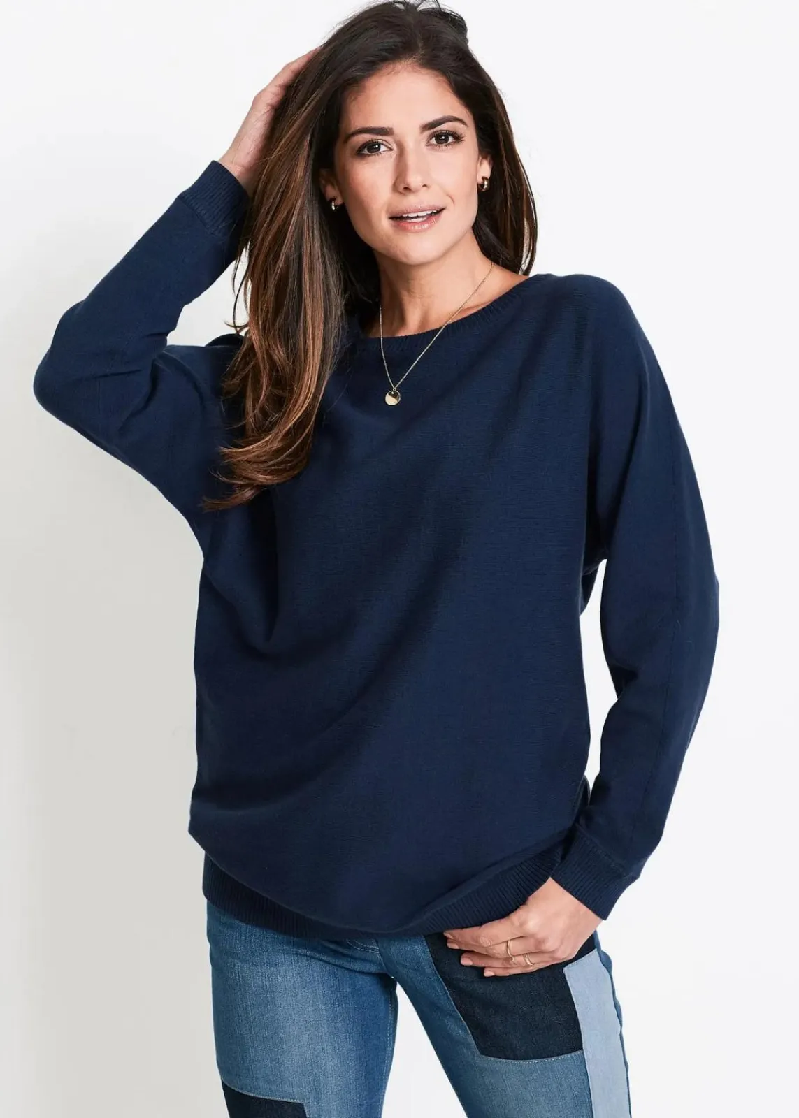Legerer Pullover mit Fledermausärmeln und Rippbündchen
