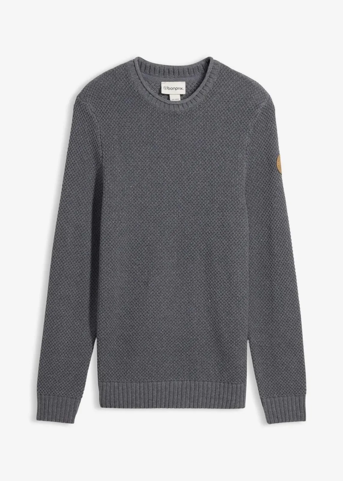 Kerniger Rundals-Pullover mit recycelter Baumwolle