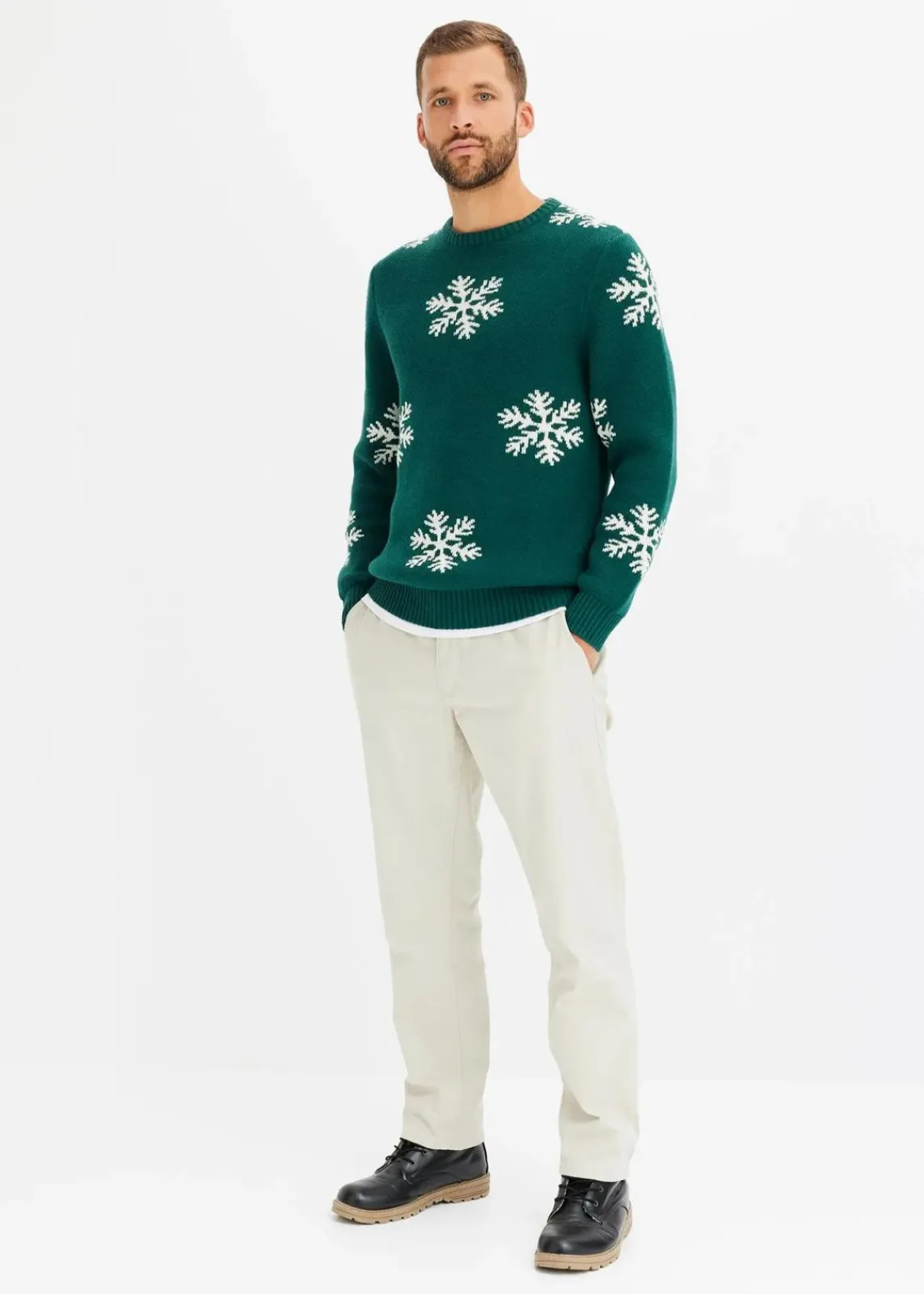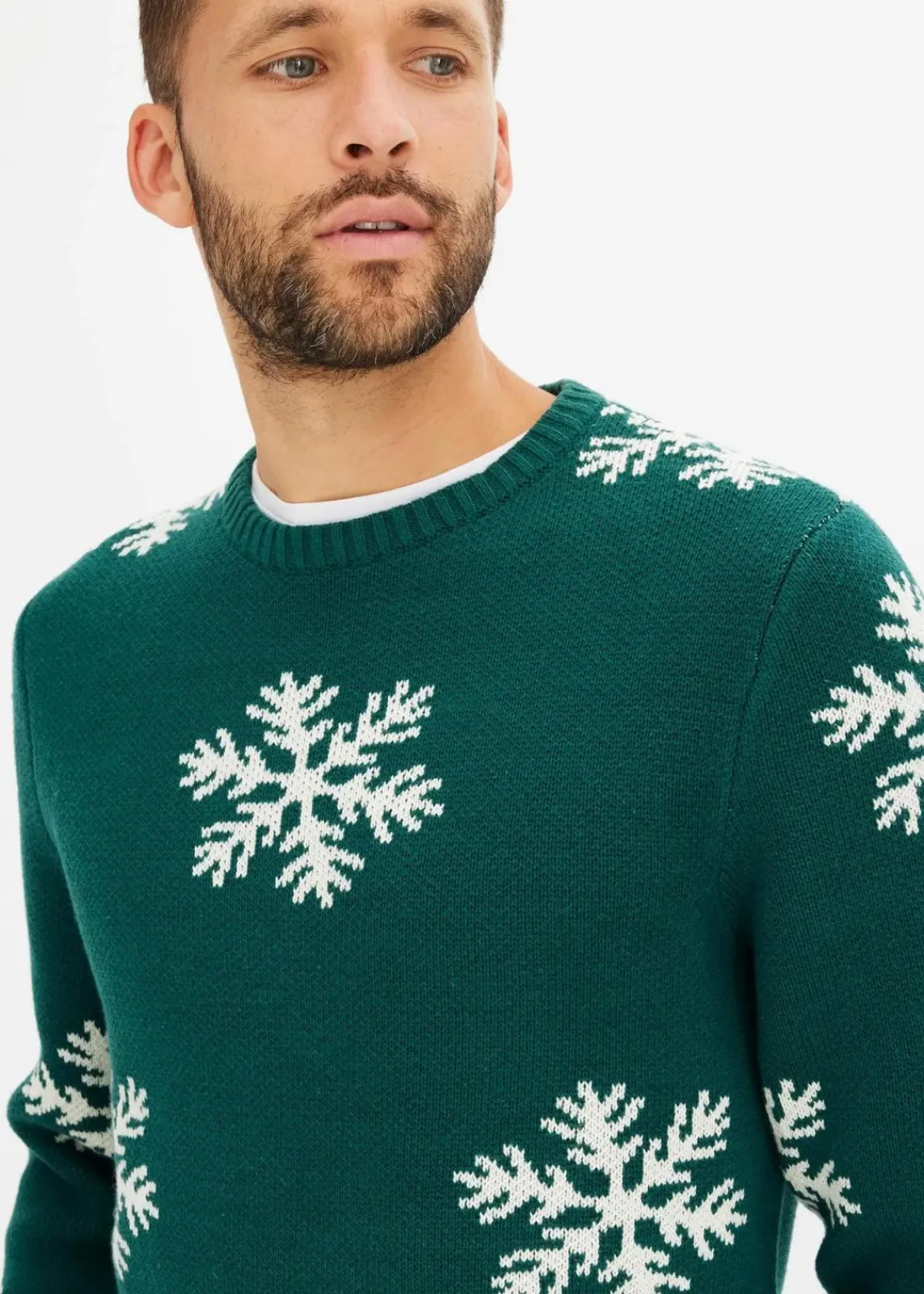 Lässiger Pullover mit winterlichen Druck, mit recycelter Baumwolle