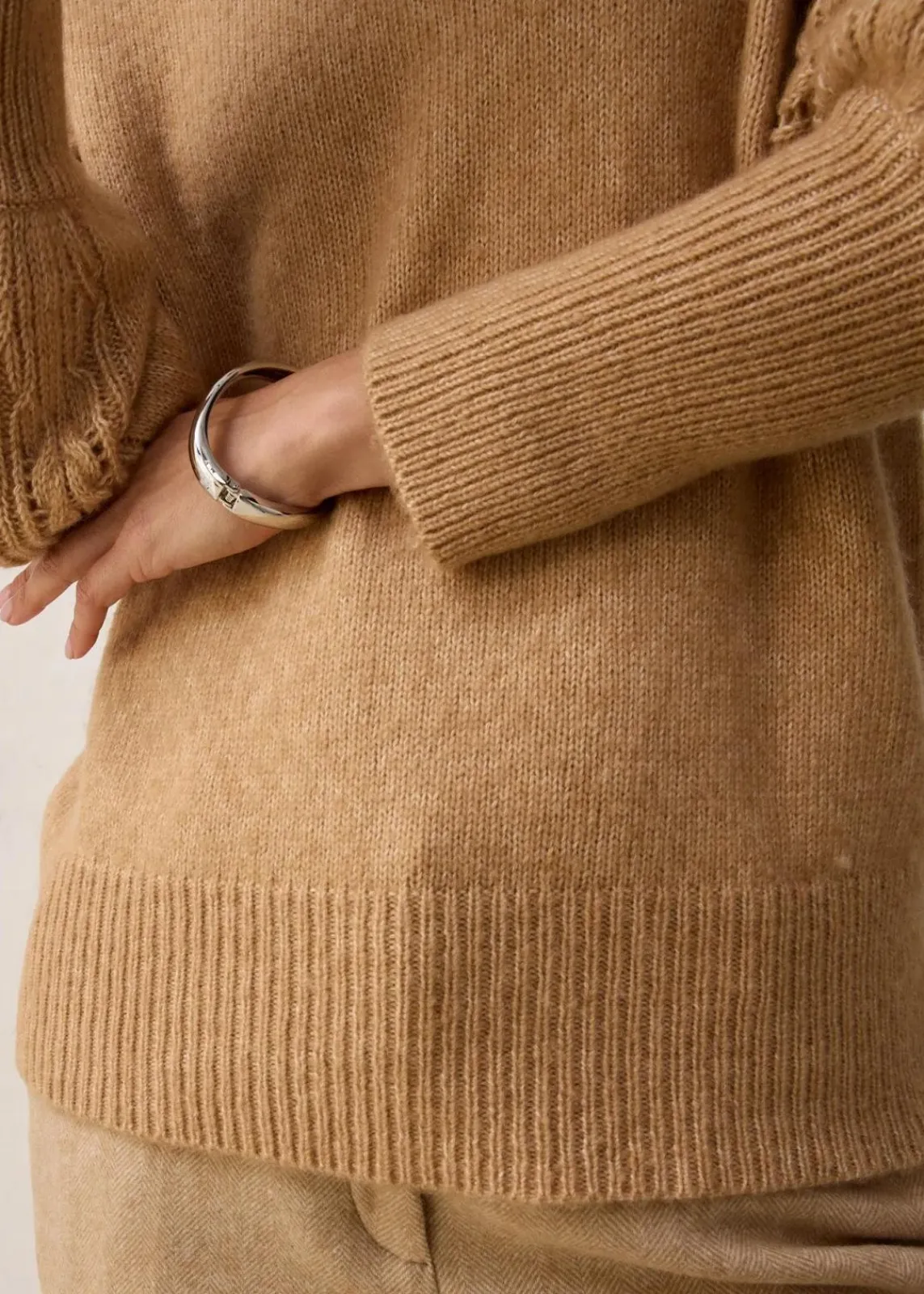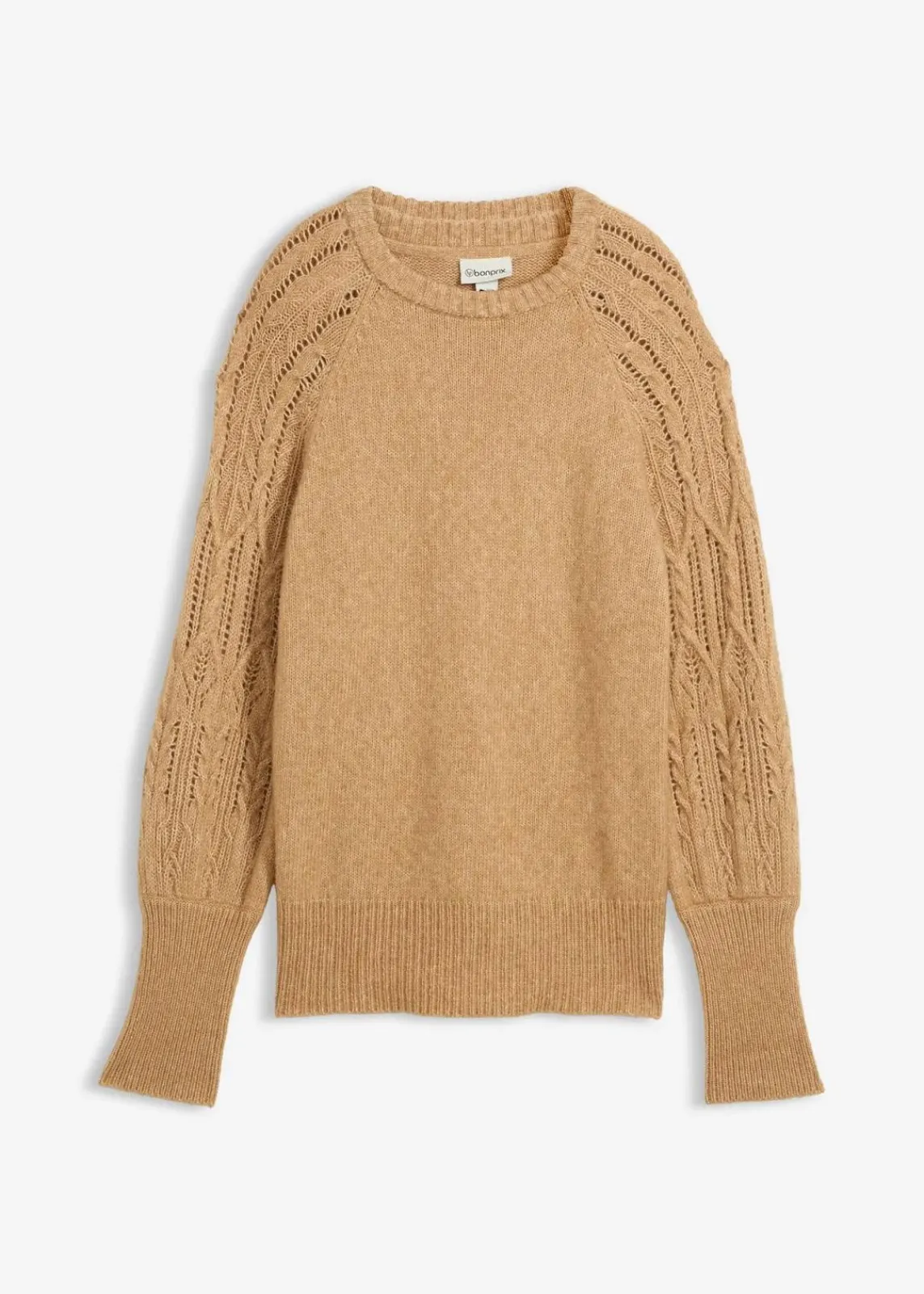 Pullover mit wärmenden Woll-Anteil, schmückende Strickmuster an den Ärmeln