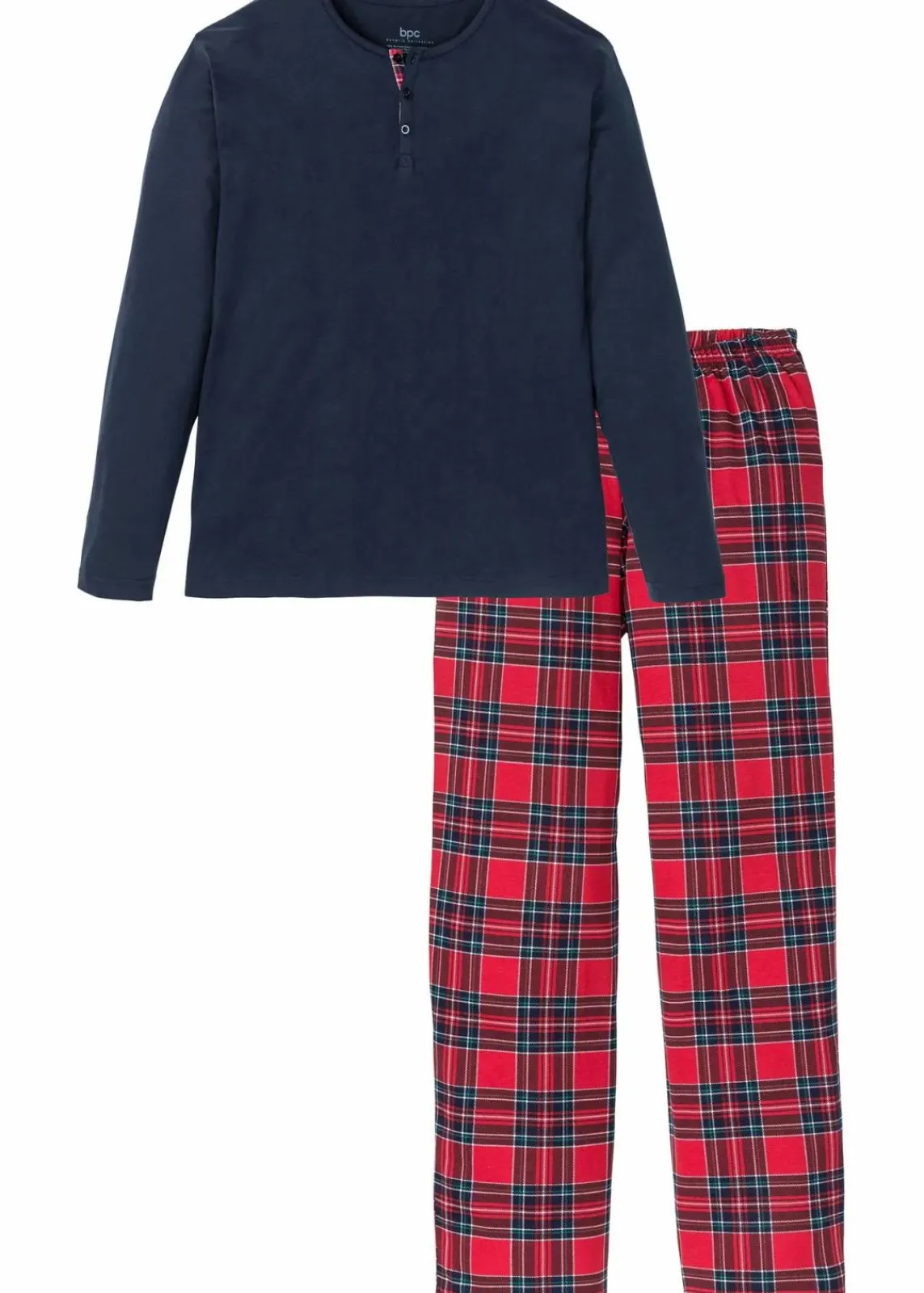 Dieser langärmelige Herren Schlafanzug ist mit einer Knopfleiste gearbeitet. Er verfügt über ein klassisches Karomuster. Der hohe Baumwollanteil macht den Pyjama besonders trageangenehm.