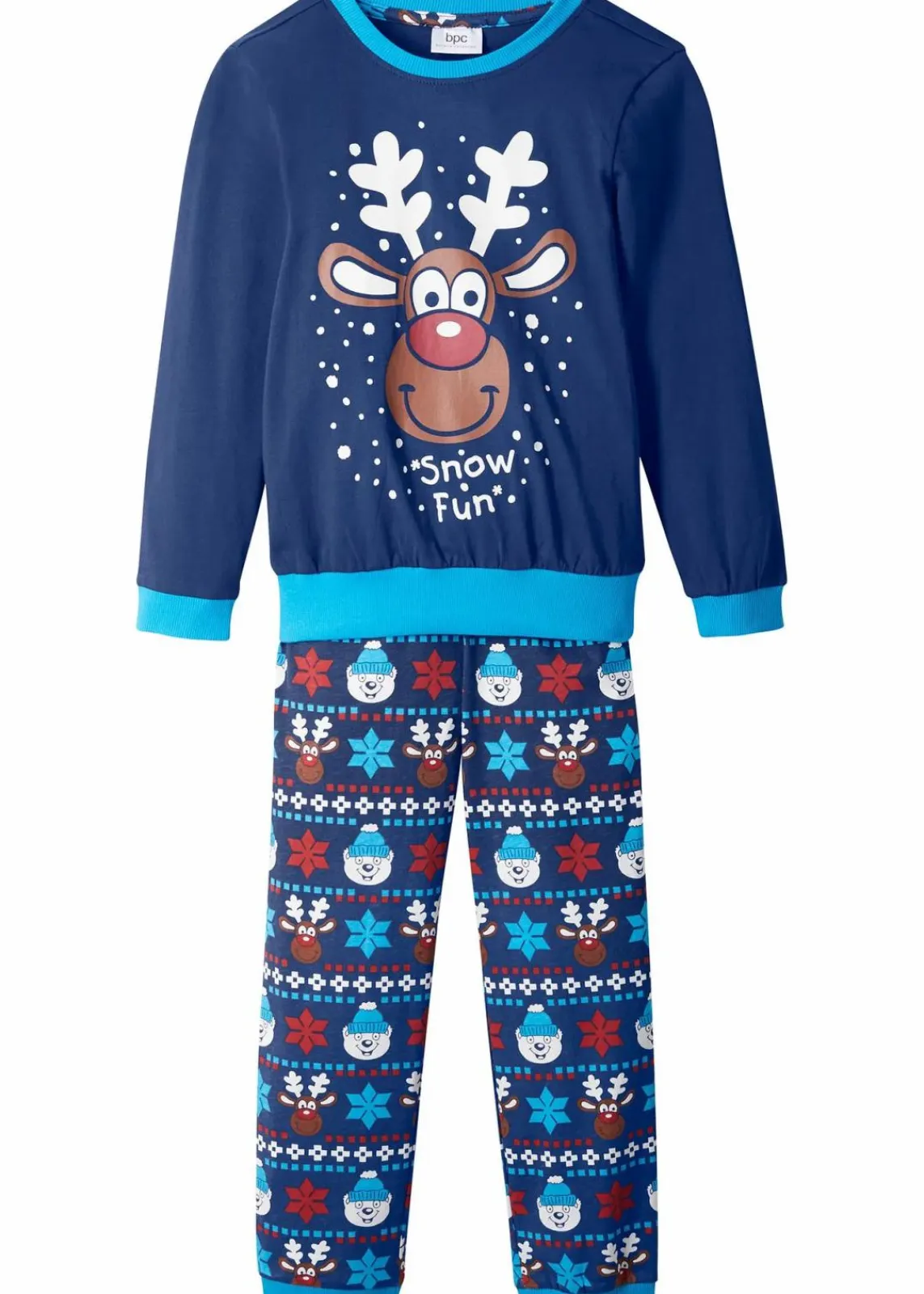 Süßer Schlafanzug mit Elch-Weihnachtsmotiv und Bio-Baumwolle.