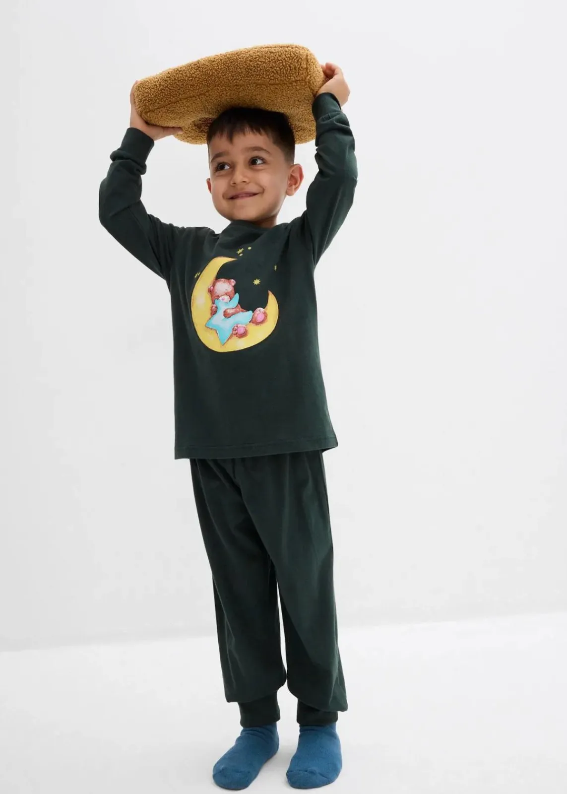 Kuscheliger Pyjama aus weicher Baumwolle mit einem Druck, welcher im dunkeln leuchtet.