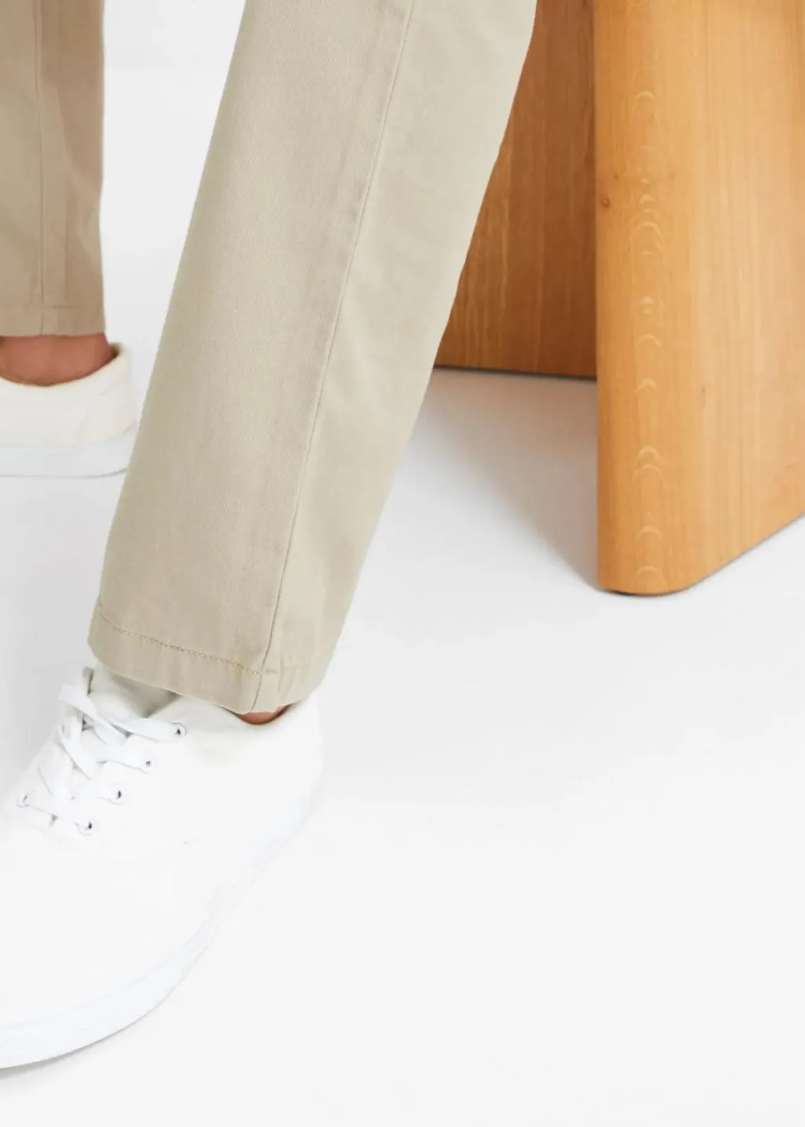 Die Herren Chino-Hose Regular Fit von bpc zeichnet sich durch ihre gute Passform mit geradem Bein aus und sorgt für einen gepflegten Auftritt. Der klassische Schnitt mit normaler Leibhöhe mit Reißverschlussöffnung und Gürtelschlaufen macht die Chino zum vielseitigen Basic. Die schrägen Eingrifftaschen vorne und die Gesäßtaschen mit Paspel und Knopf runden das stimmige Design des Modells im Regular Fit ab.Kombiniert mit einem Karohemd und Lederschuhen entsteht ein ansprechendes Outfit für den Tag.