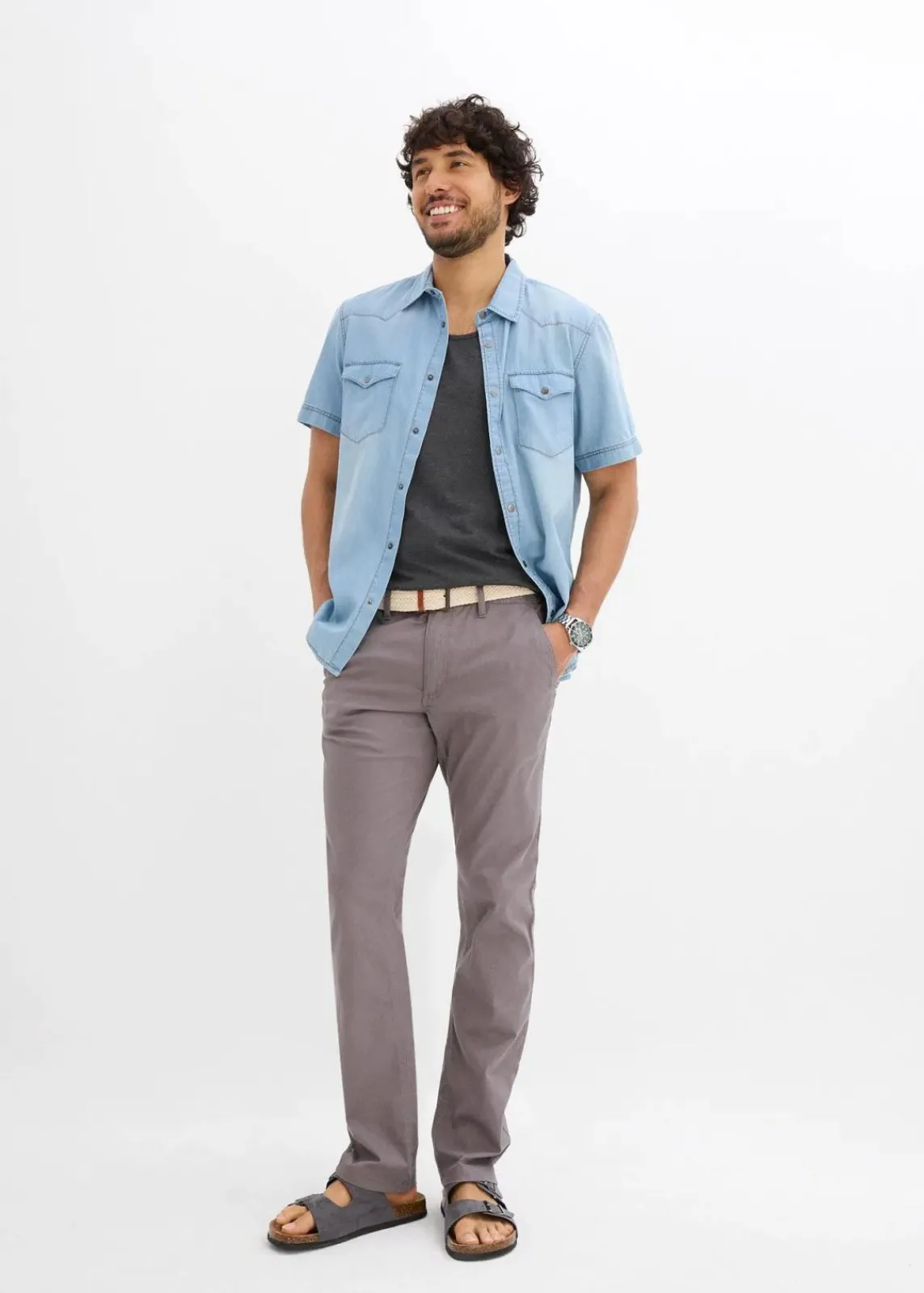 Schöne Chino-Hose mit Komfortschnitt, Gürtel und vier Taschen
