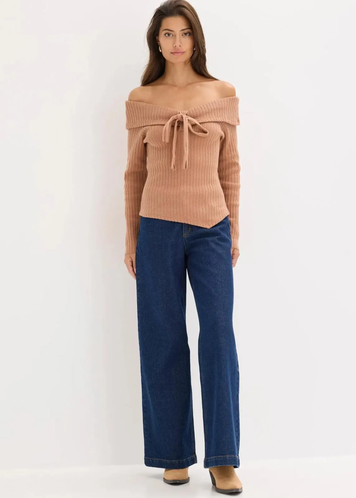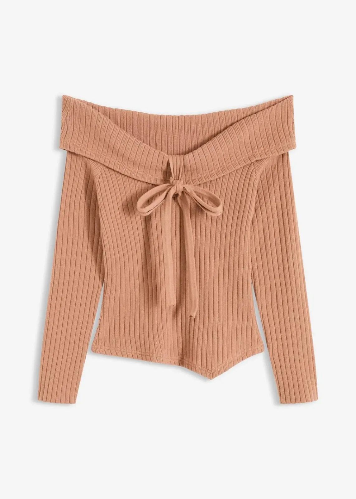 Moderner Carmenpullover mit Rippmuster