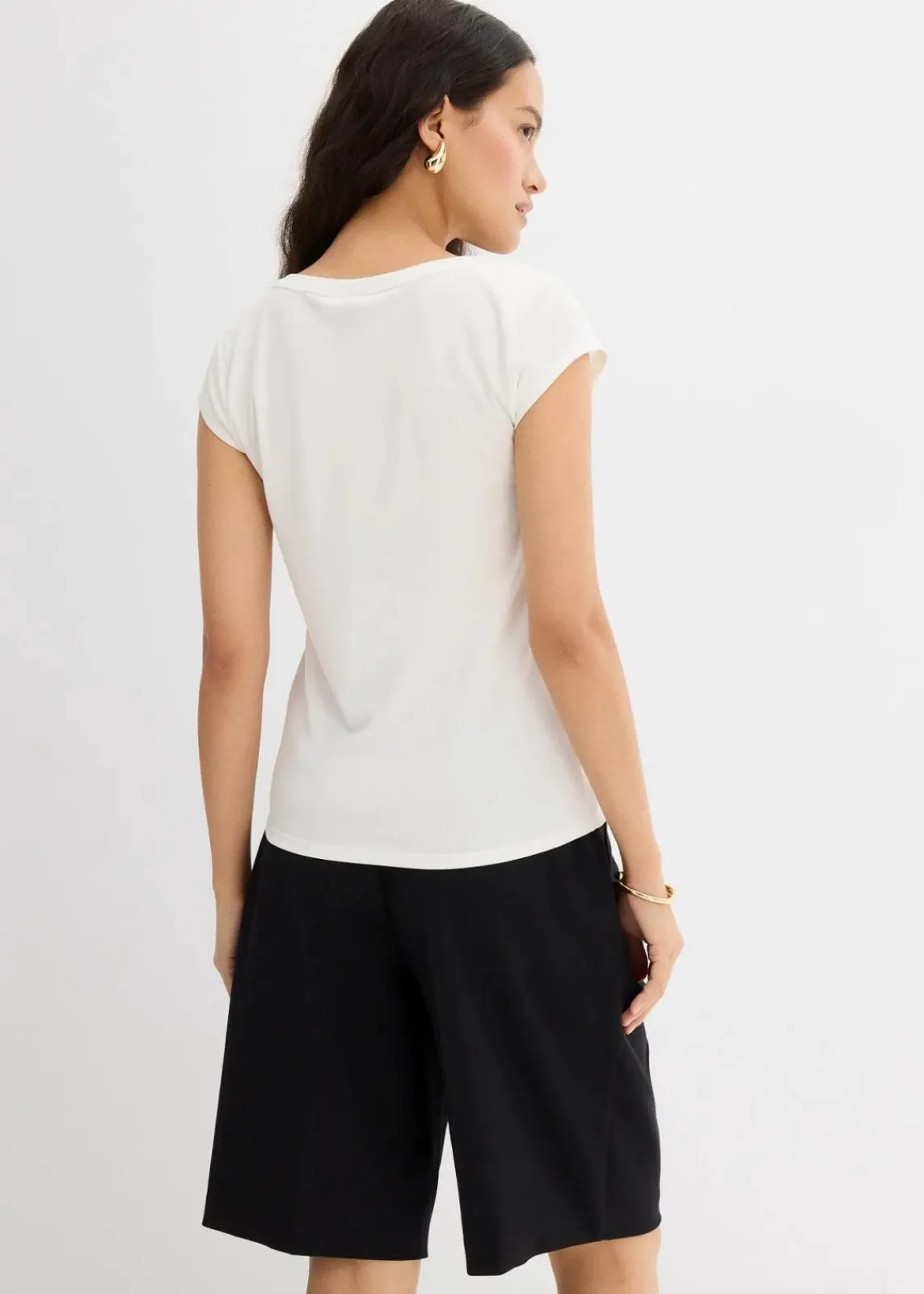 Eng anliegendes Top mit U-Boot Ausschnitt in Ripp-Struktur