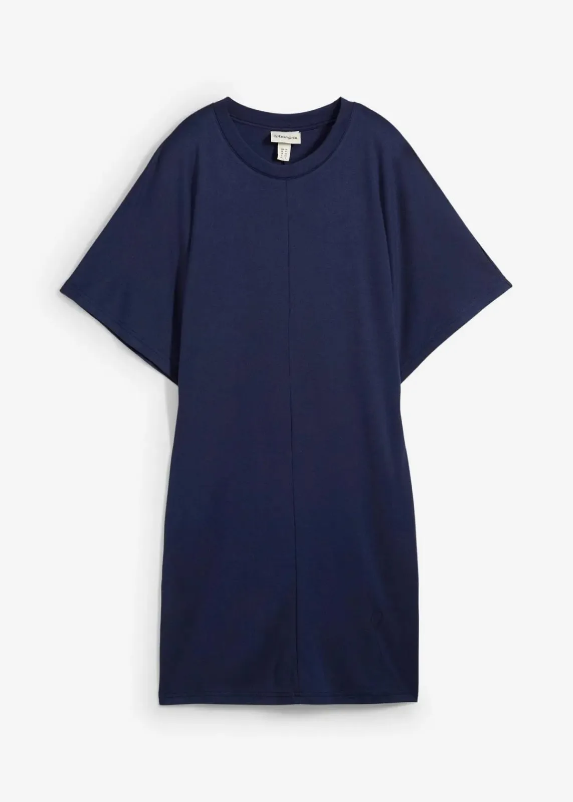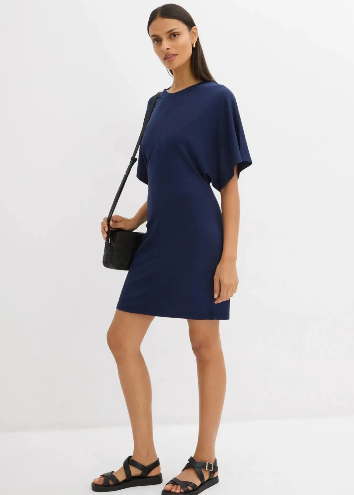 Jersey-Minikleid mit betonter Taille, weiten Ärmeln sowie einer sichtbaren vertikalen Naht vorne