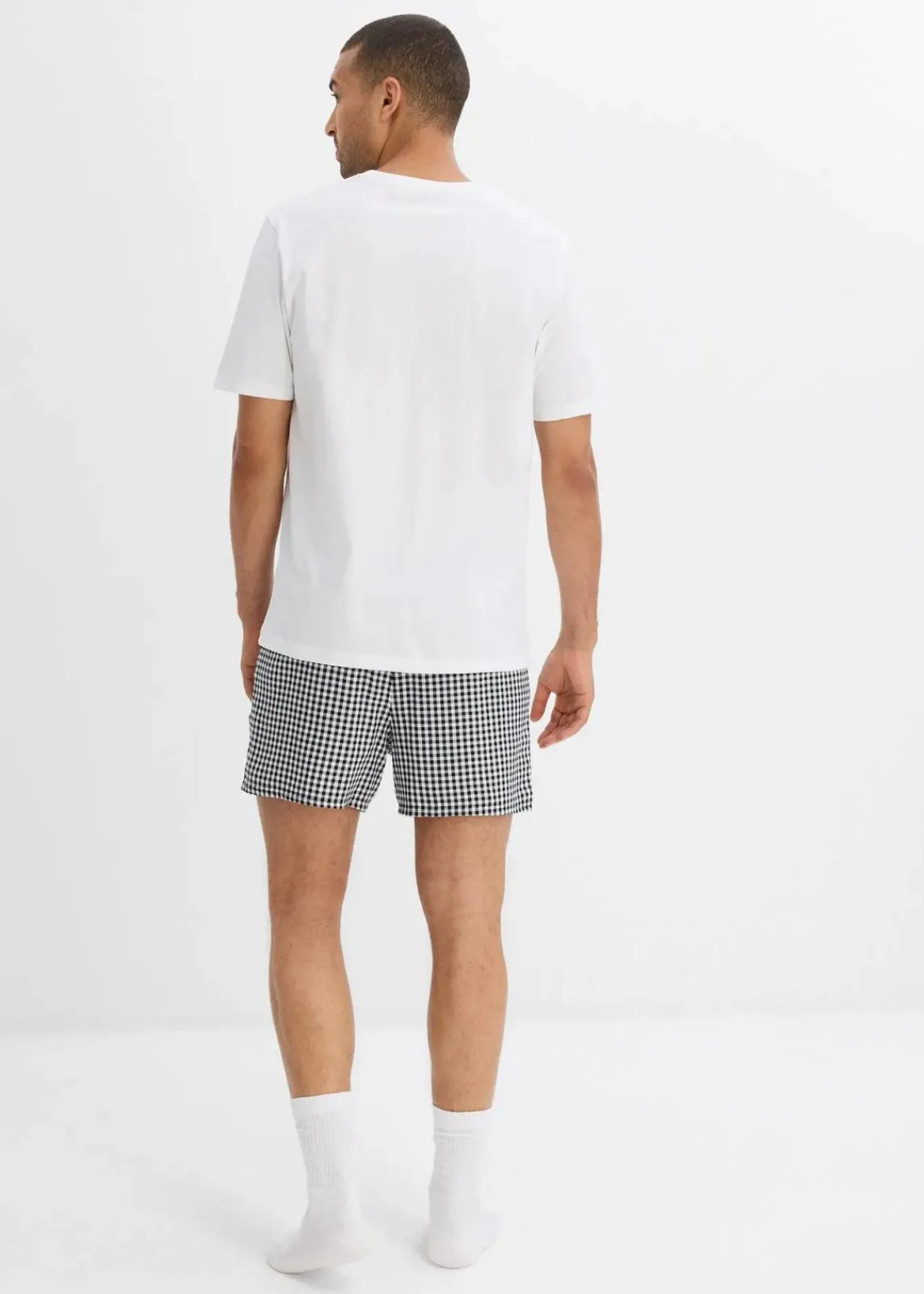 Gemütlicher Shorty aus reiner Baumwolle mit einem T-Shirt und kurzer Hose mit Eingrifftaschen.