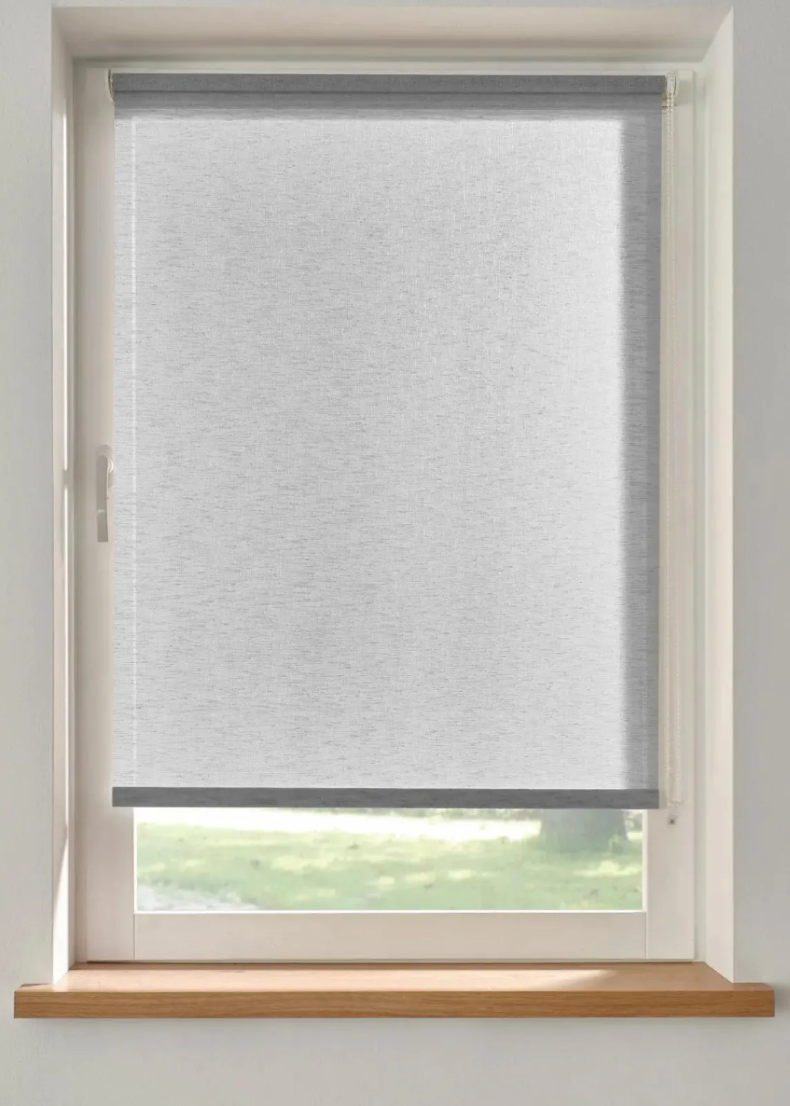 Sichtschutzrollo in schlichter Optik. Die Vorderseite hat eine Struktur-Optik in natur, so dass sich das Rollo prima kombinieren lässt.