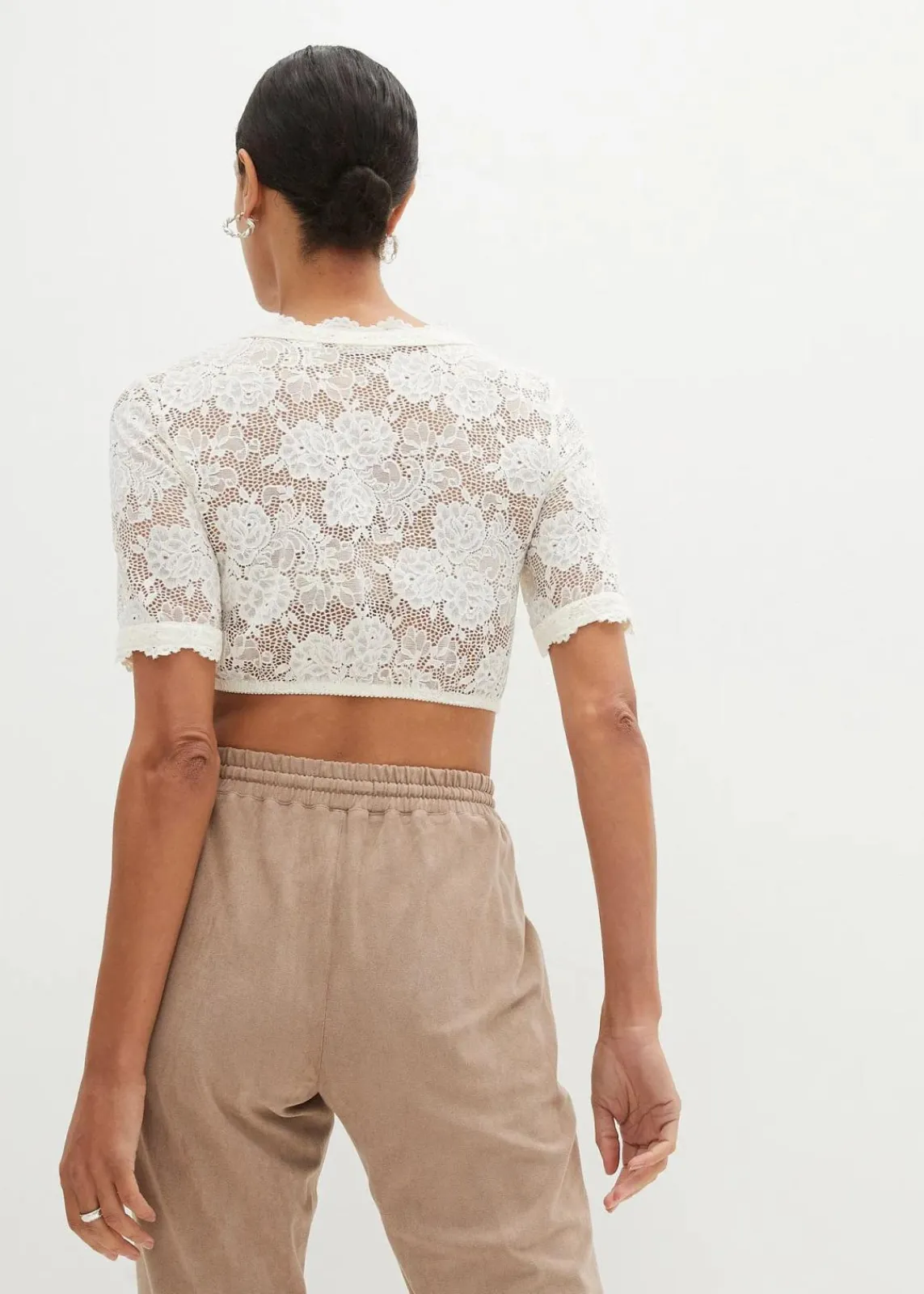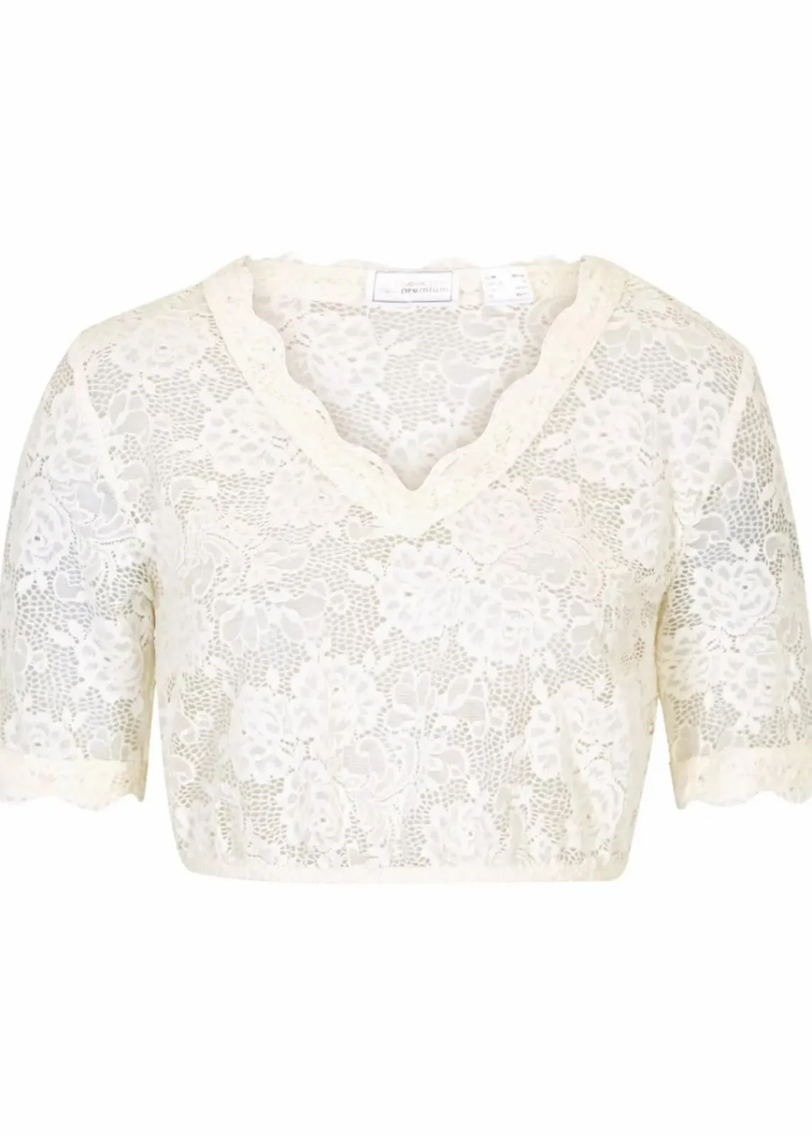 Hübsche Dirndlbluse mit Blumen-Spitze und halber Armlänge