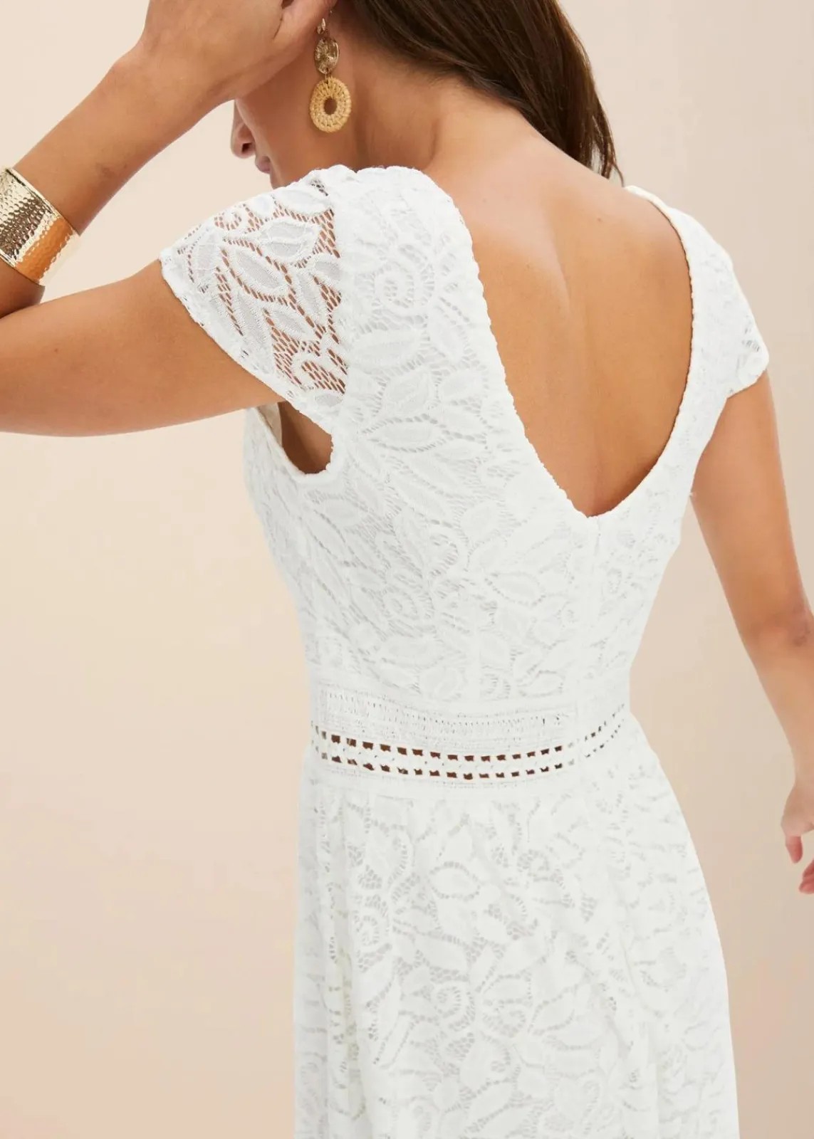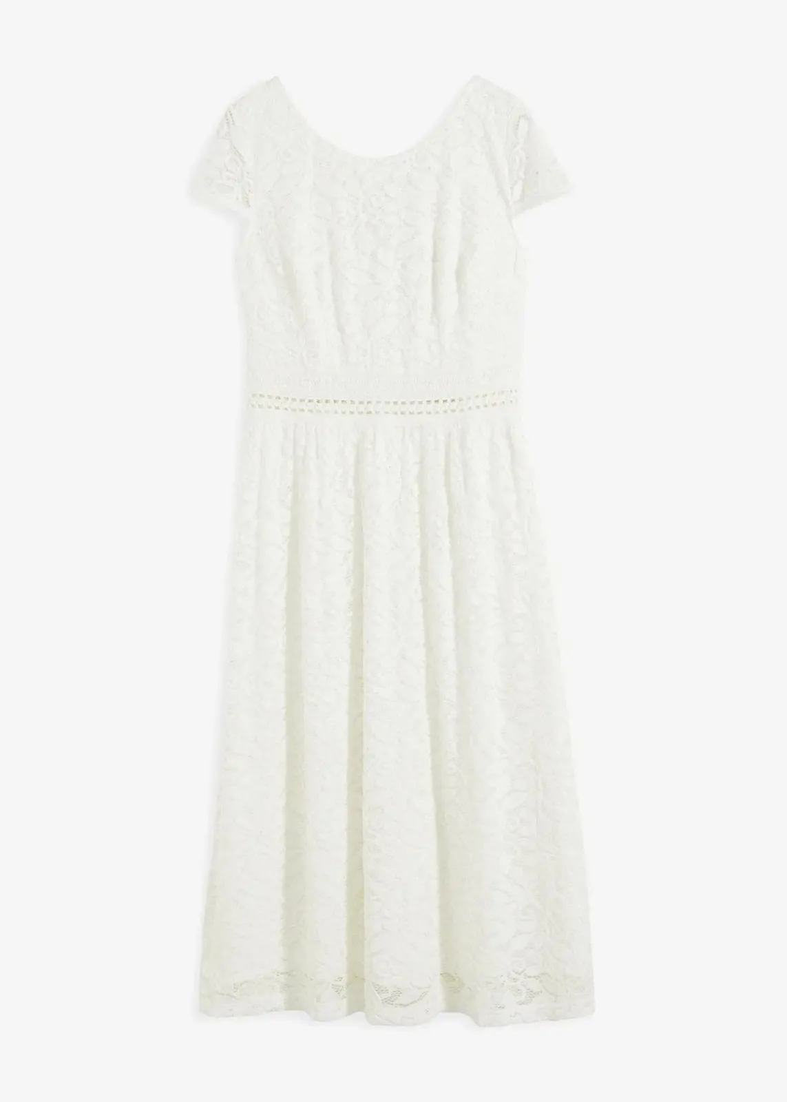Modernes Kleid mit schöner Spitze mit V-Ausschnitt im Rücken und Häkel-Einsatz in der Taille