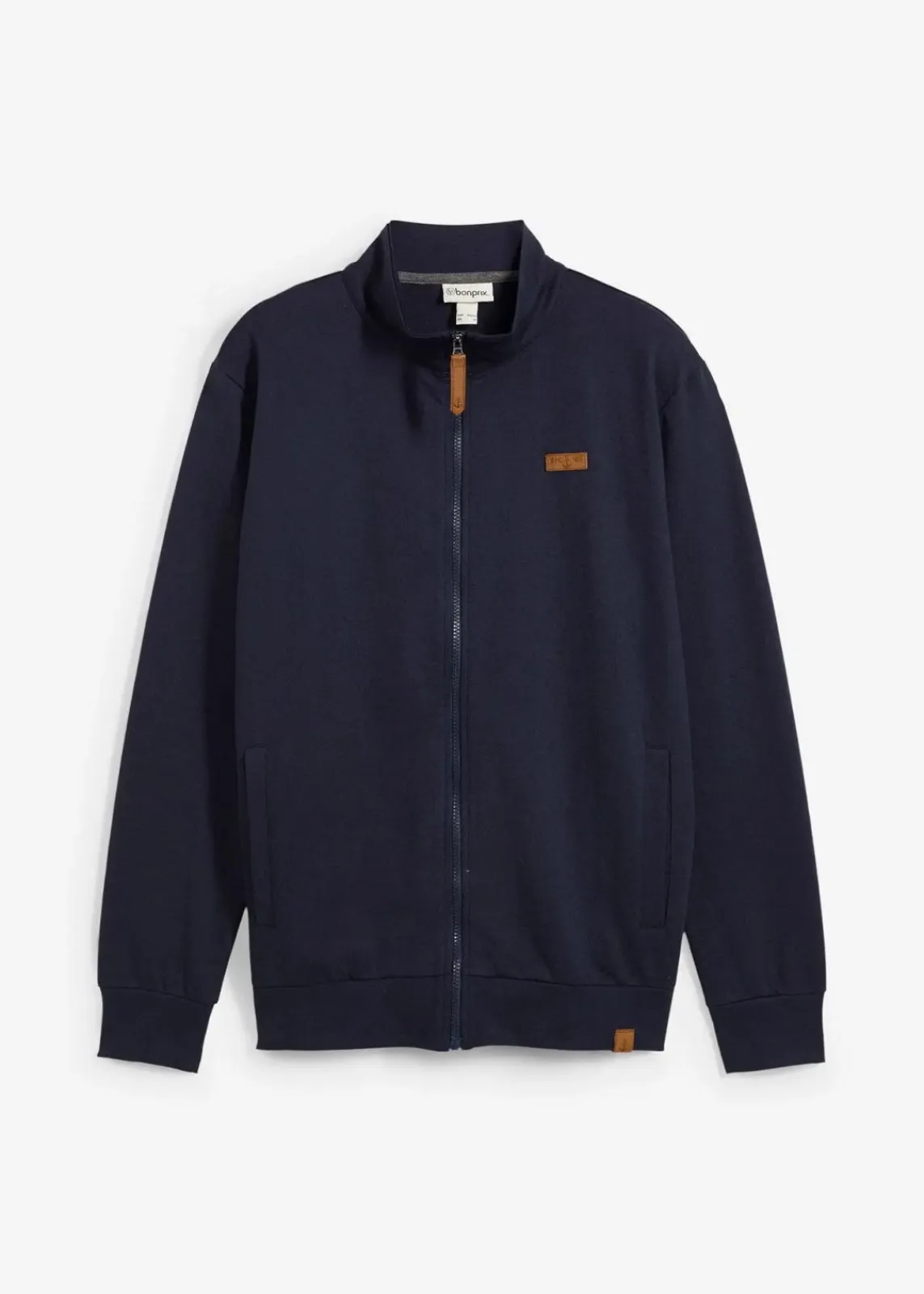 Sweatjacke mit schönen Lederimitat-Details und Stehkragen