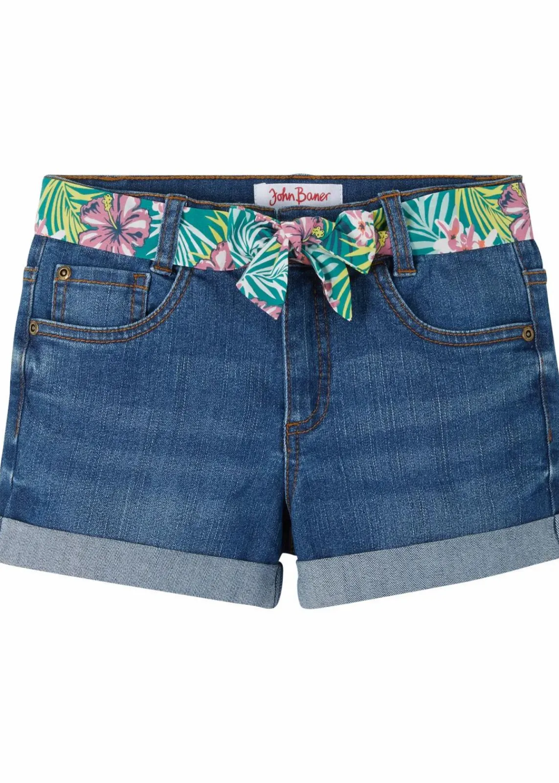 Tolle Stretch-Jeans-Shorts mit floralem Bindegürtel
