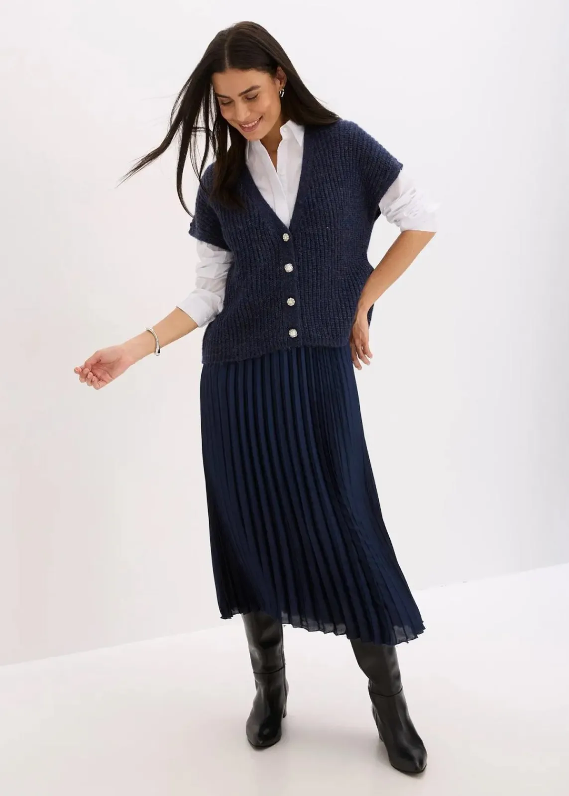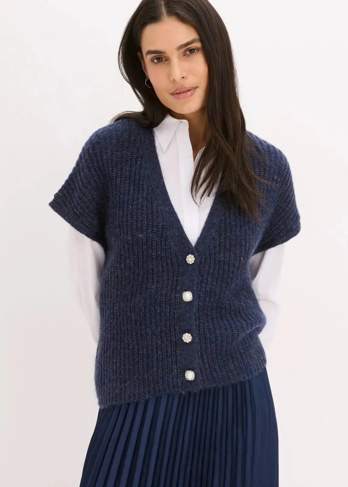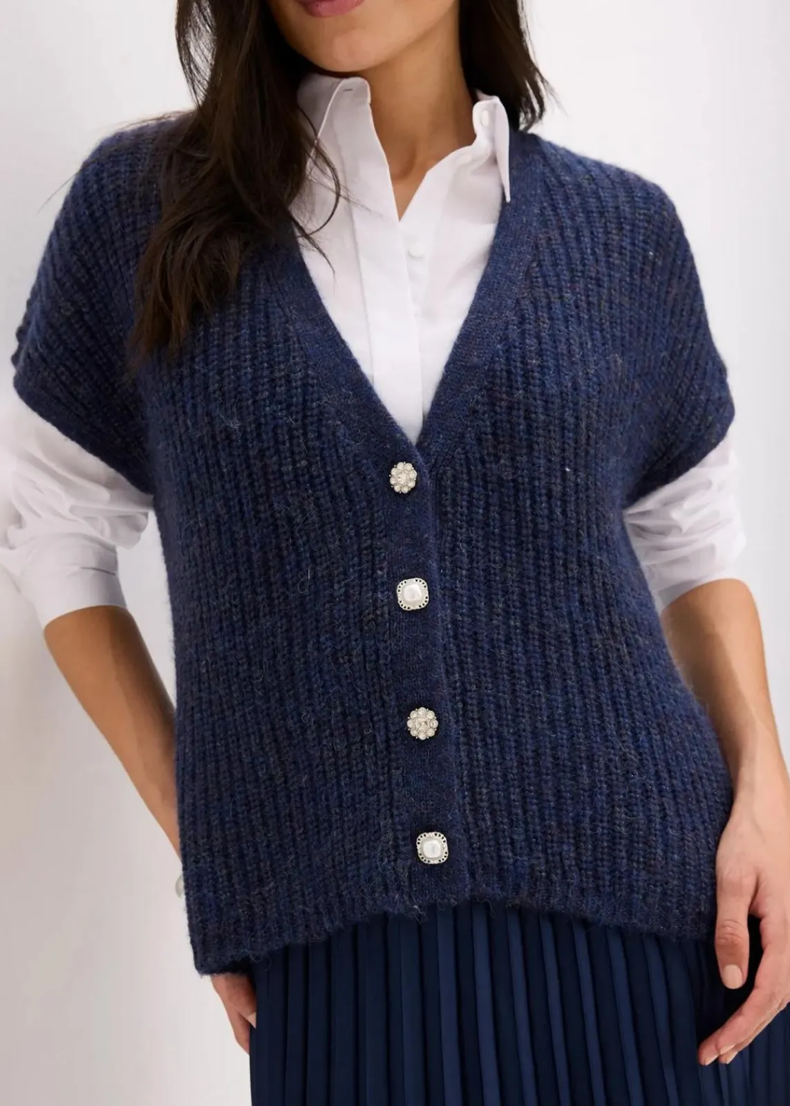 elegante Strick-Weste mit dekorativen Knöpfen