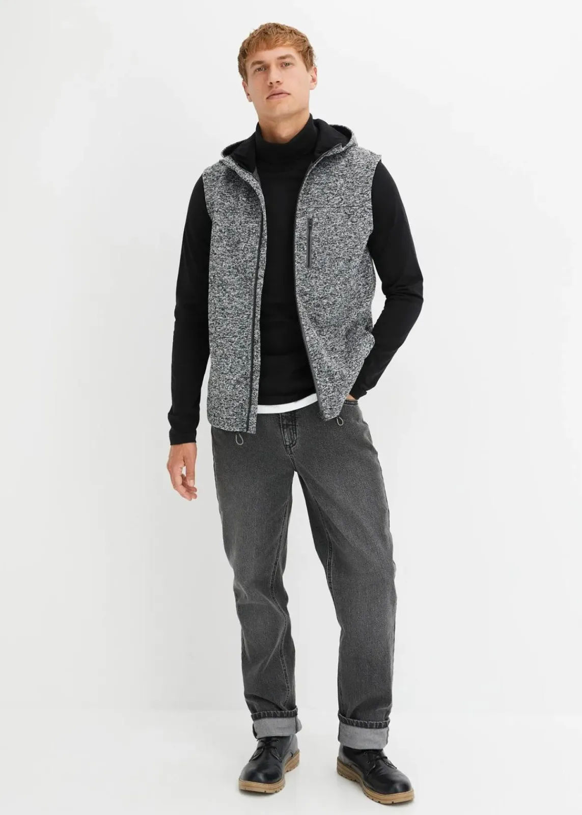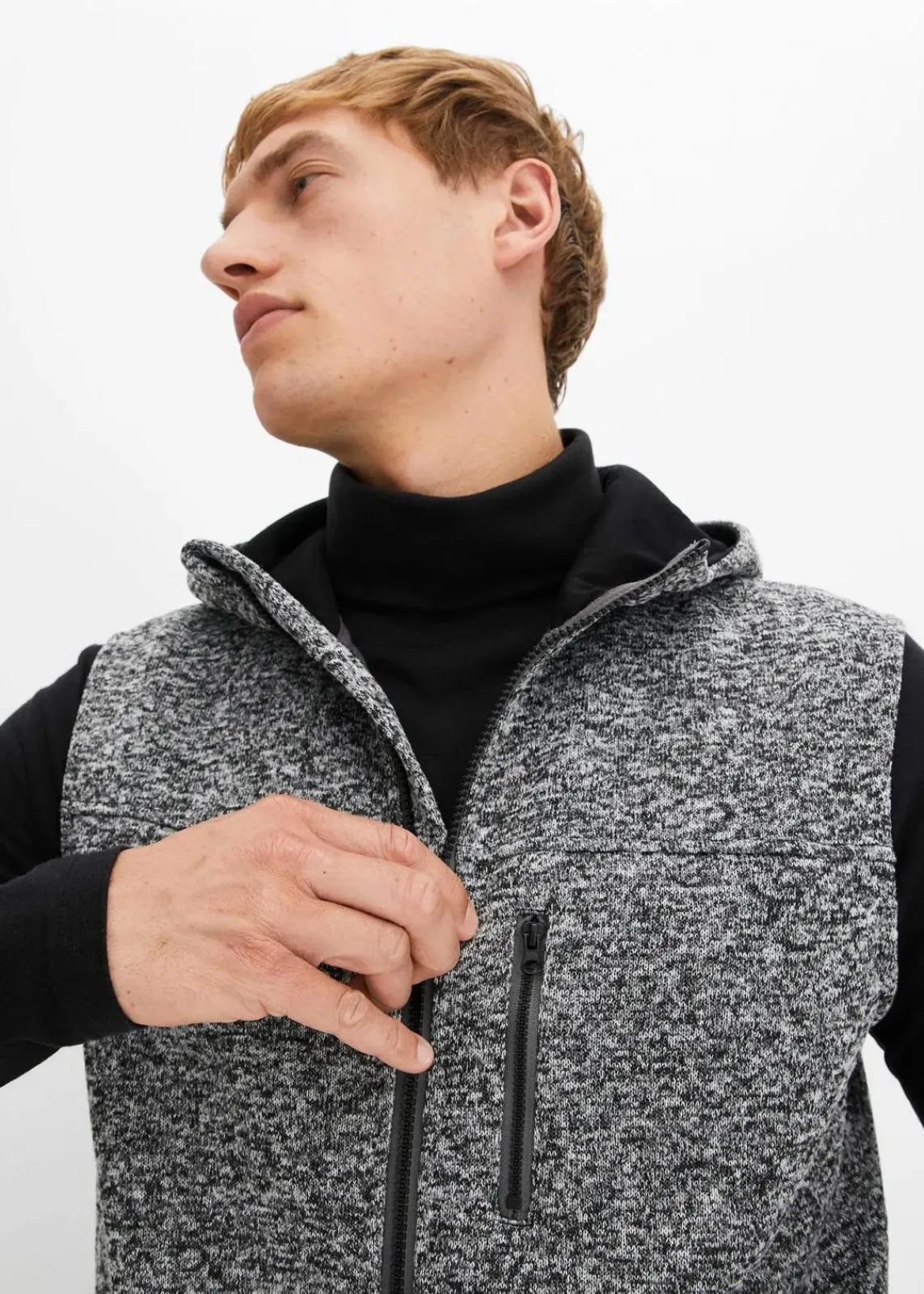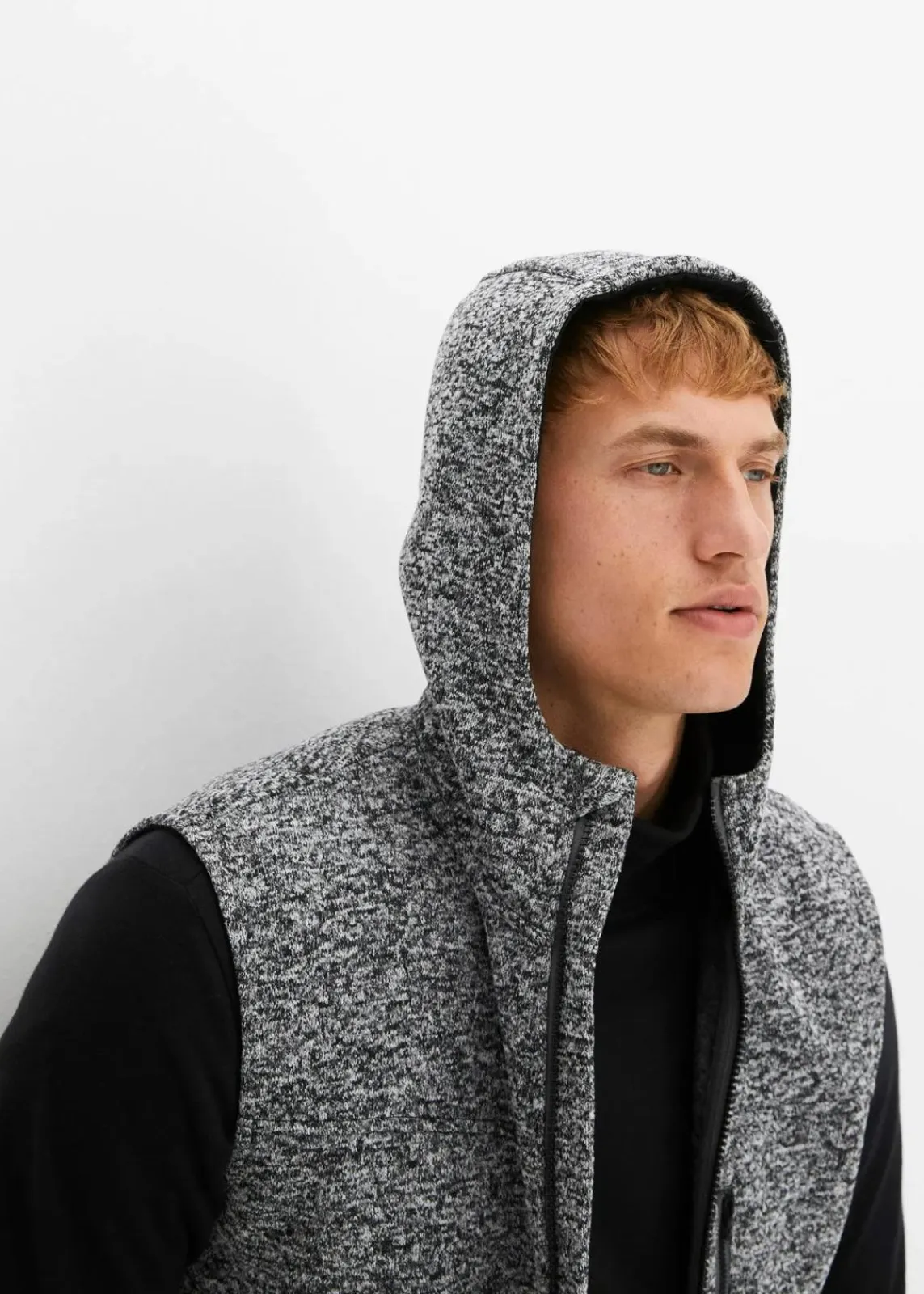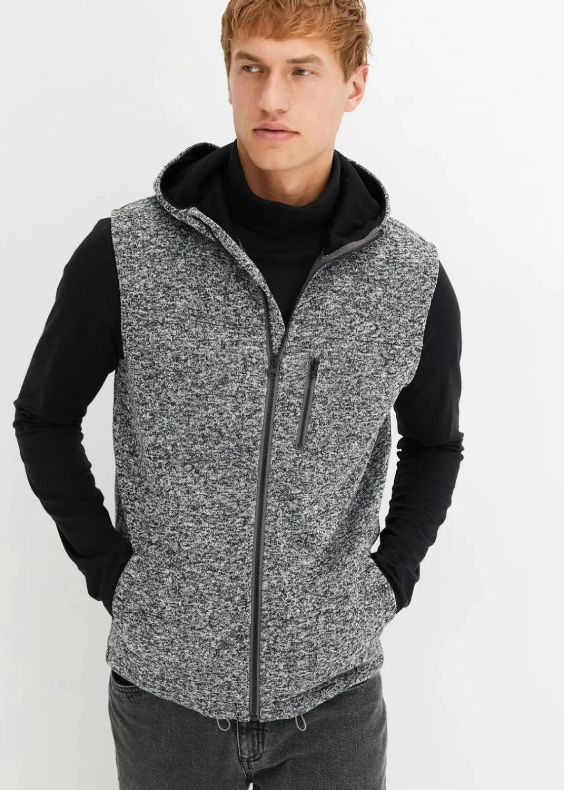 Sportive Strickfleeceweste mit Kapuze und Reißverschluss