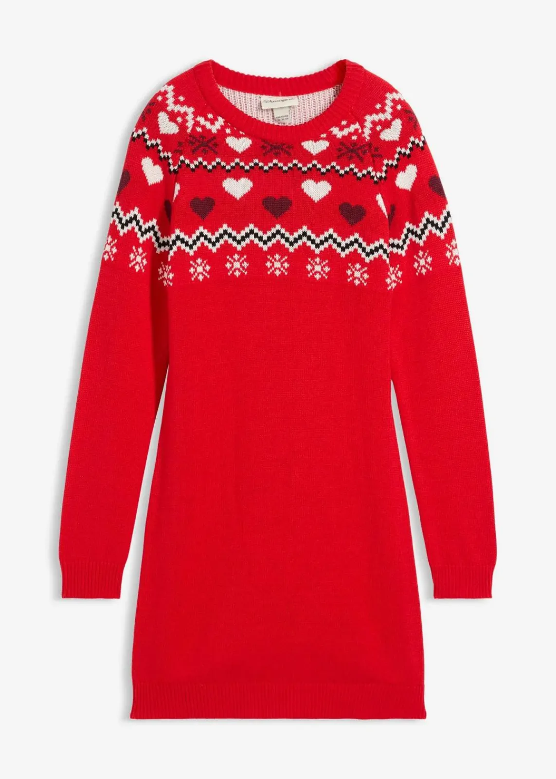 Schönes Mädchen Strickkleid mit Norwegermuster