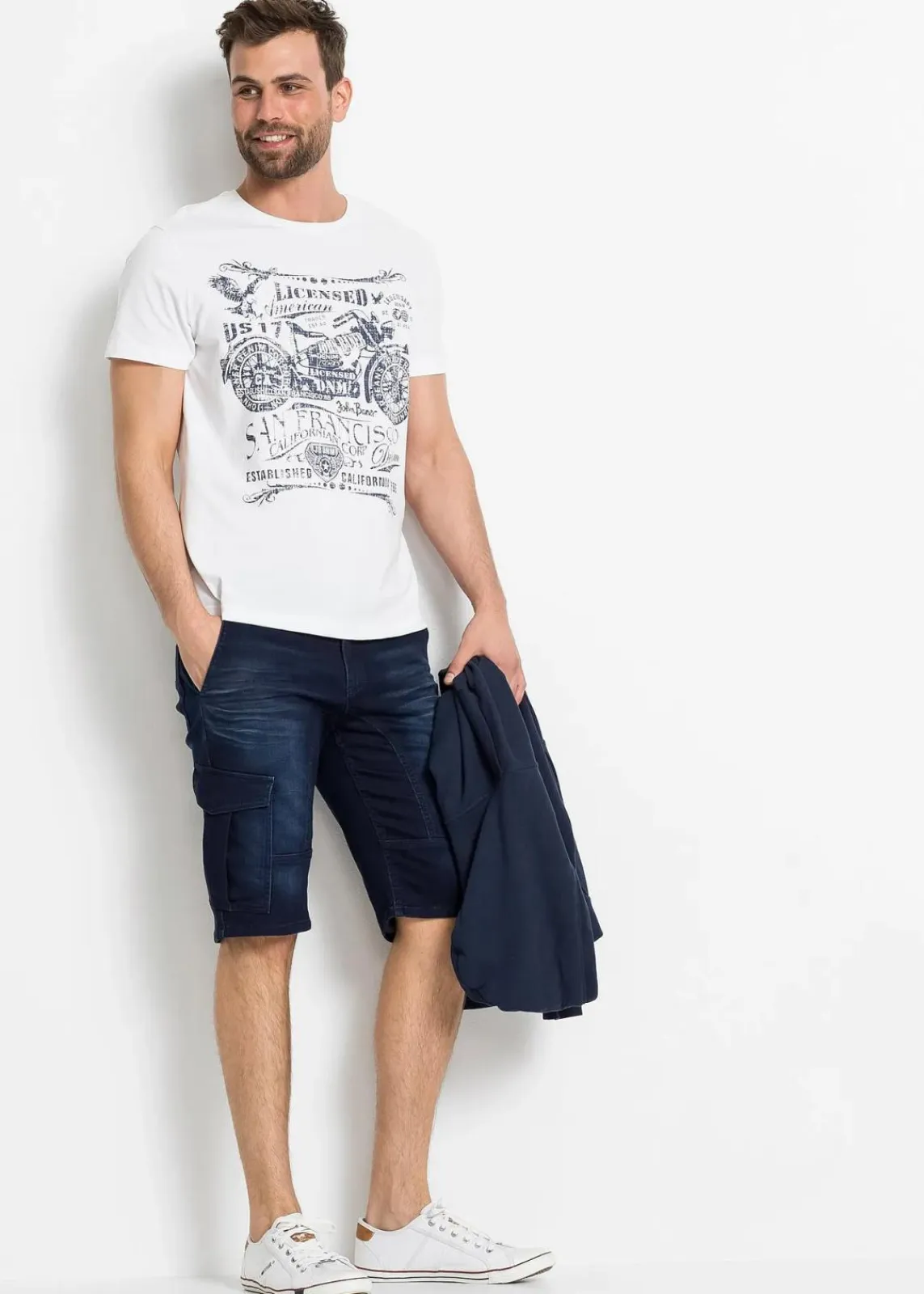 Kernige Jeans-Bermuda in Regular Fit mit seitlichem Gummizug und aufgesetzten Taschen